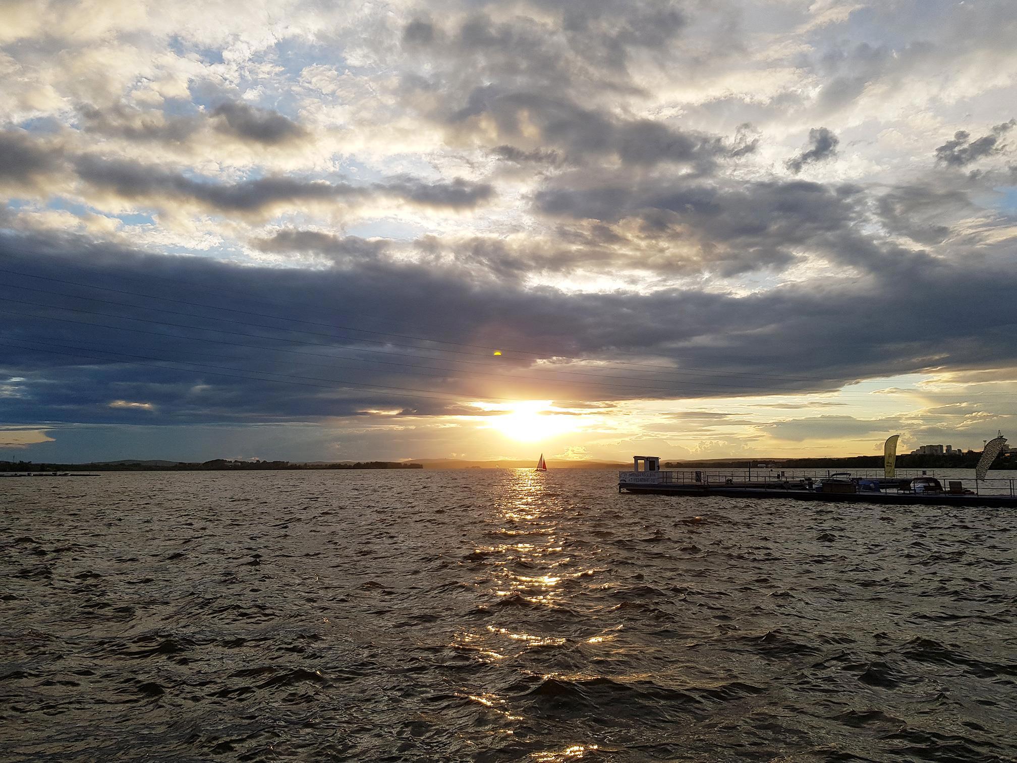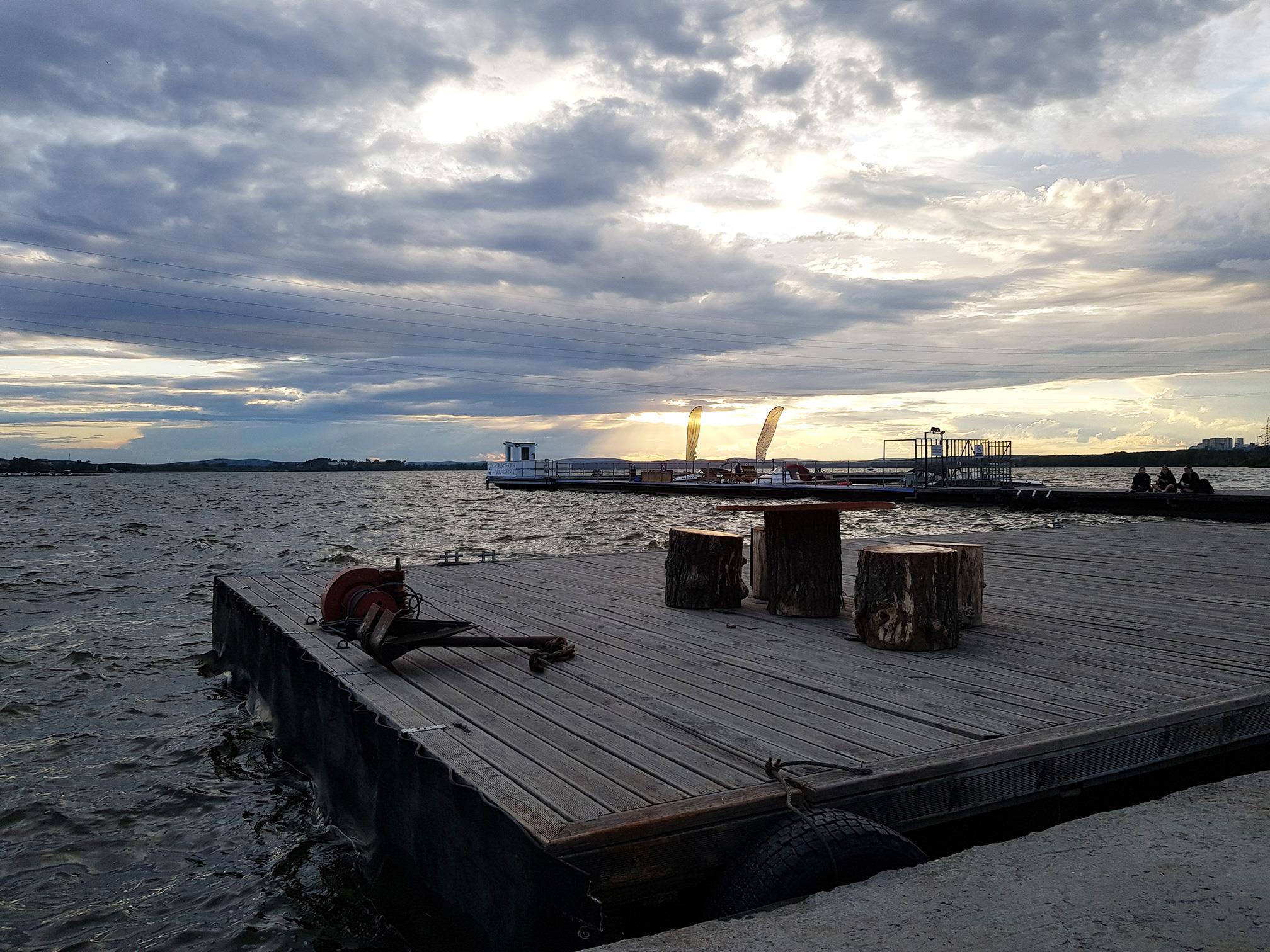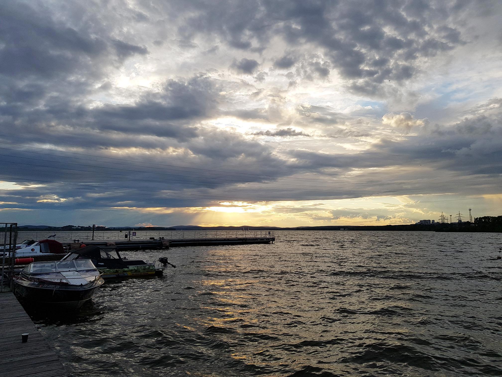 С одной стороны, Шарташ чуть ли не через дорогу (полчаса пешком), но с ним никаких приятных воспоминаний не связано, яхт там особо нет, да и он значительно меньше, ну и для нормального заката надо уходить на его юго-восточный берег, а это около часа пешком. Плюс лес вокруг с постоянным комарьём. До Коматека же всего десять минут от трамвайной остановки, ну и всякие приятные воспоминания. Но довольно слов, время фото: