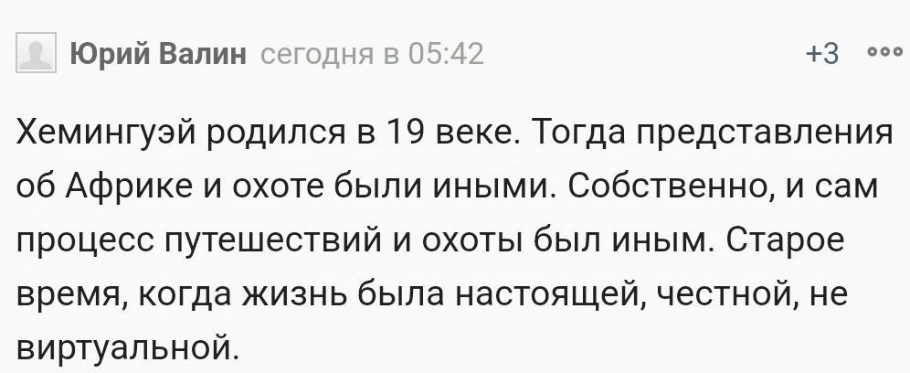 Вот это фотография. И мне сразу же вспомнился фильм "Снега Килиманджаро", который я видел в детстве и с которого началось мое знакомство с Эрнстом Хемингуэйем. После фильма я сразу же прочитал и его одноименный рассказ.