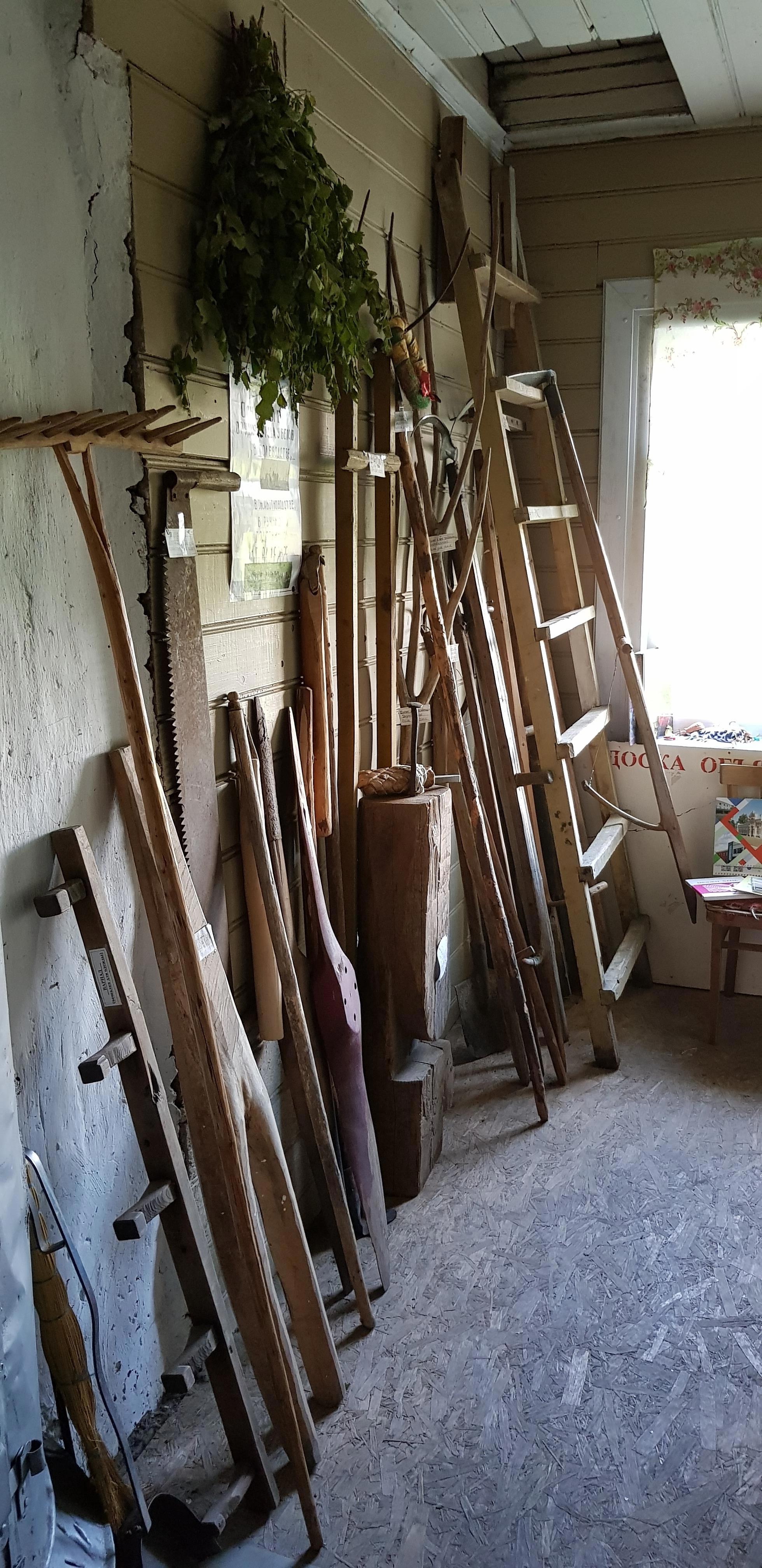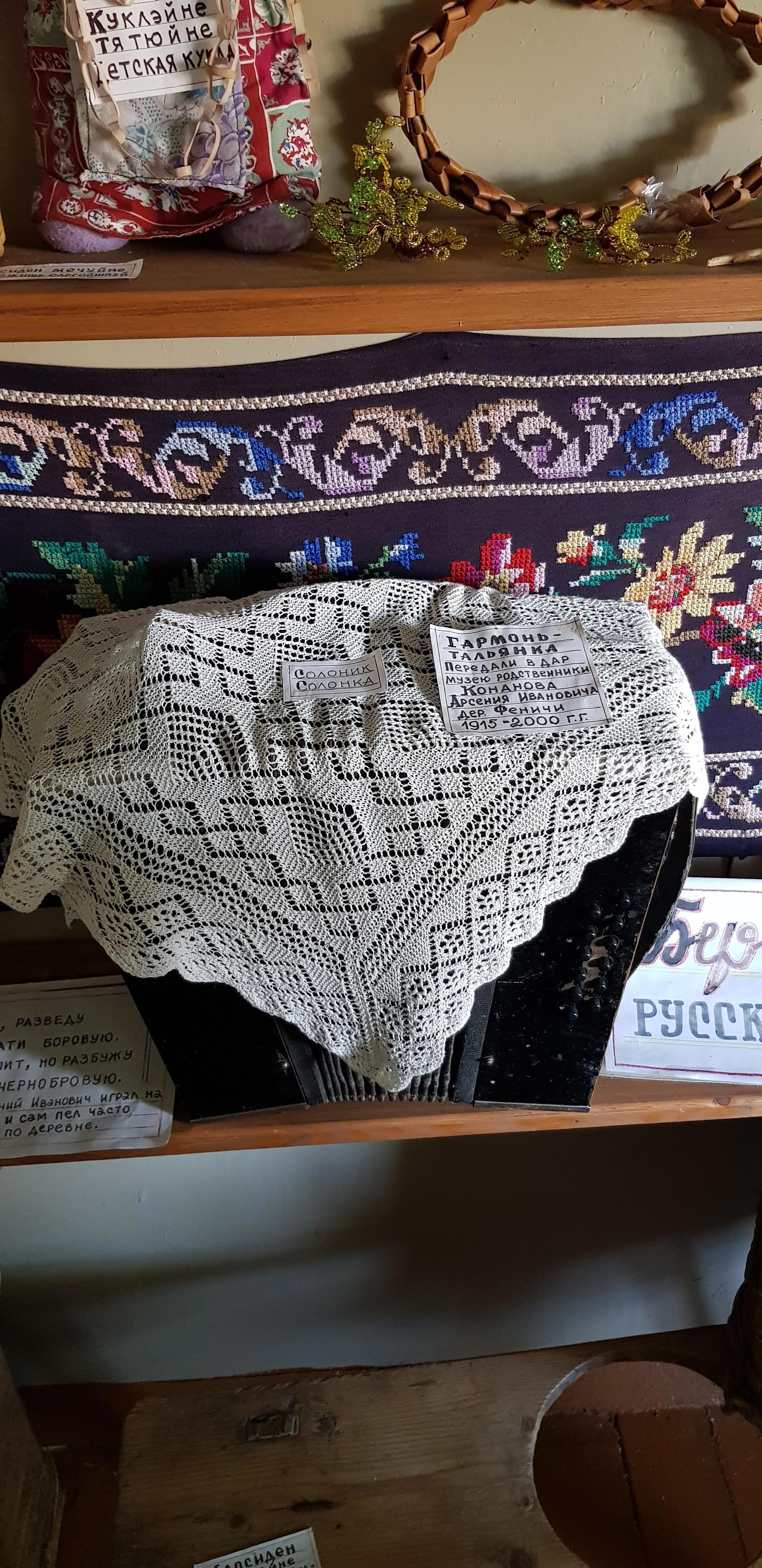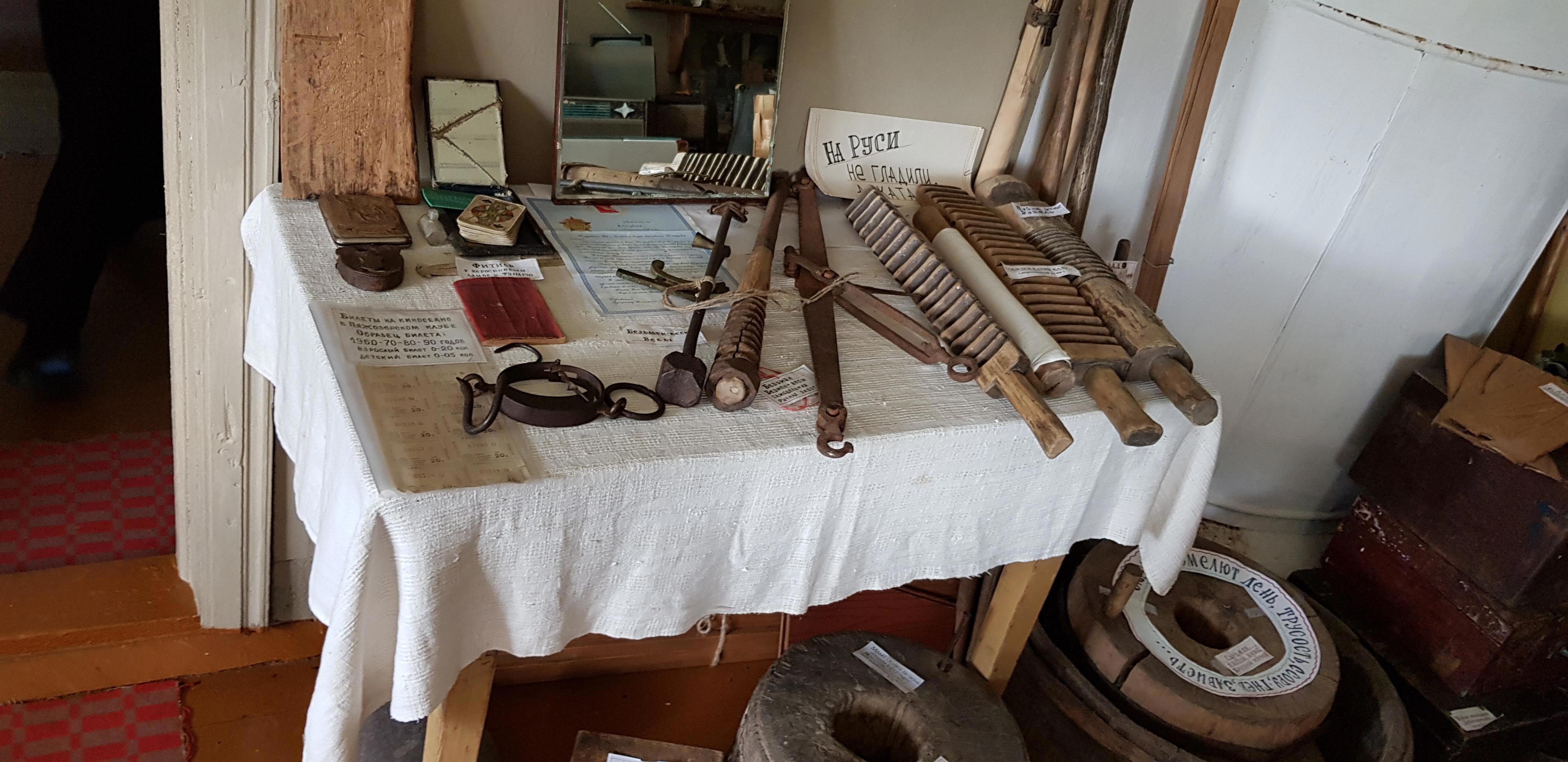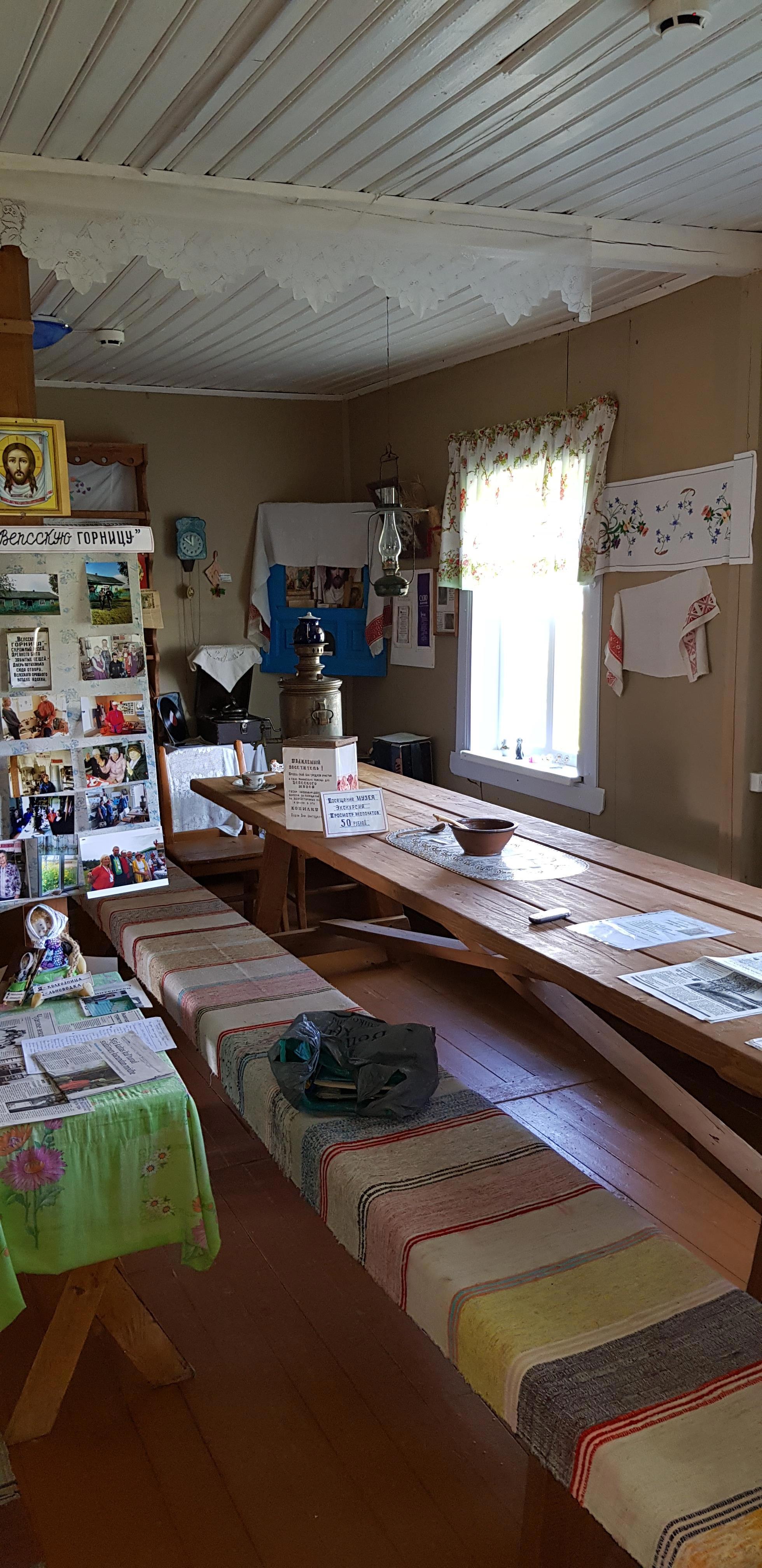 В "Горнице" собраны множество вещей, отданных в дар жителями окрестных деревень: предметы быта, ремесла, утварь, посуда... и даже два старых телефона стоят на окне. После прослушивания на патефоне столетней давности пластинки, где поет молодая Зыкина, не удивлюсь, если они тоже рабочие)))