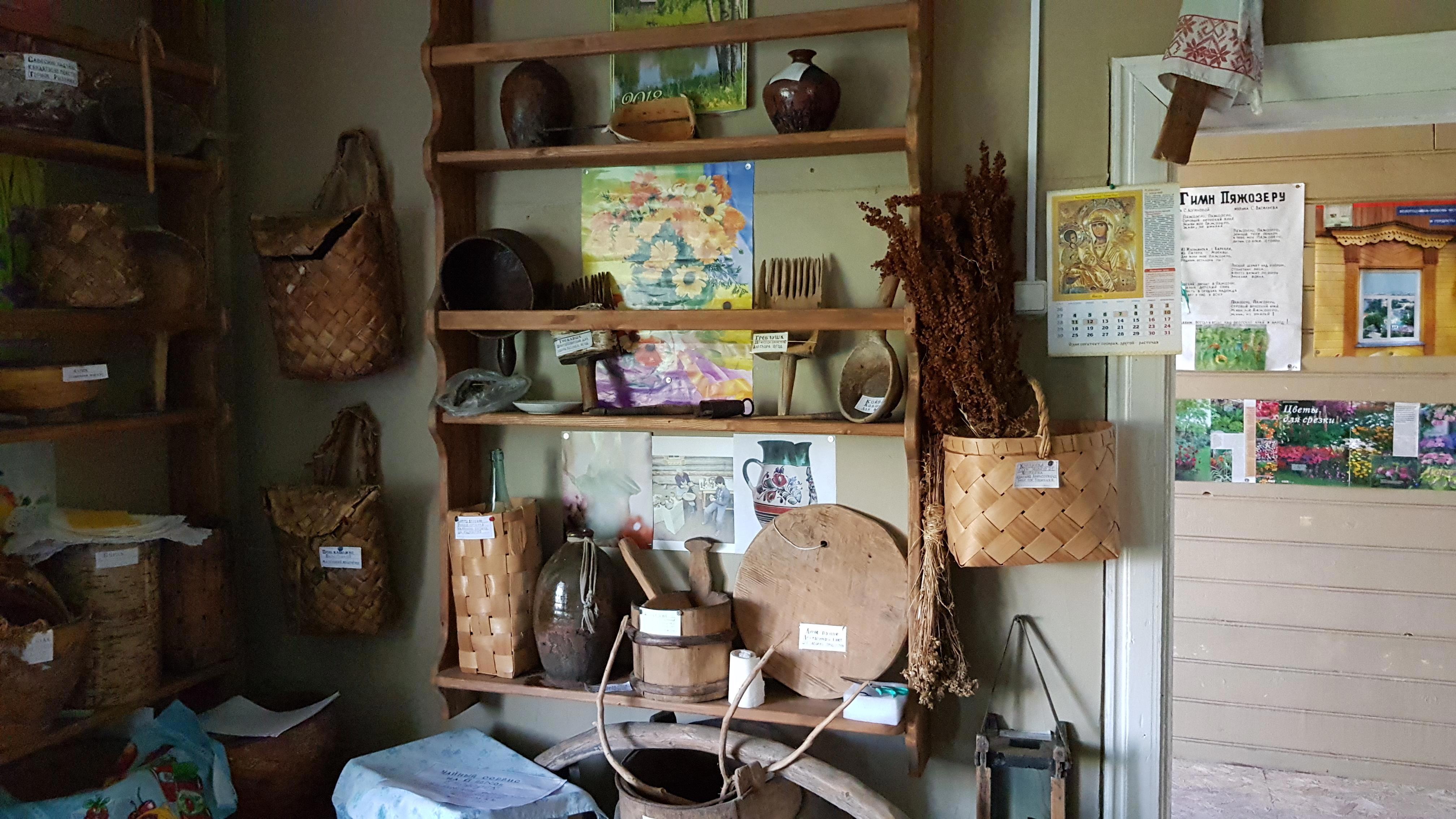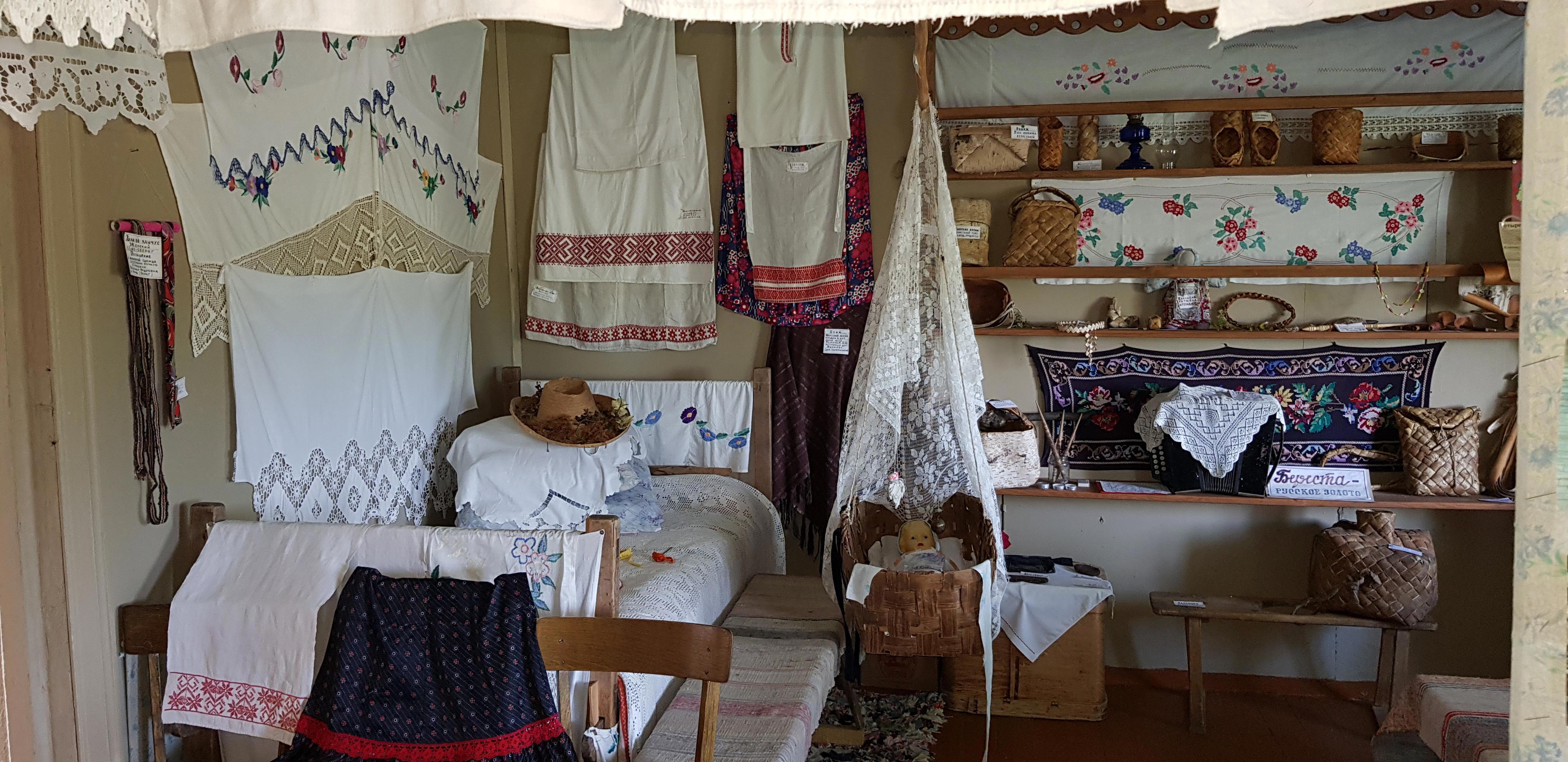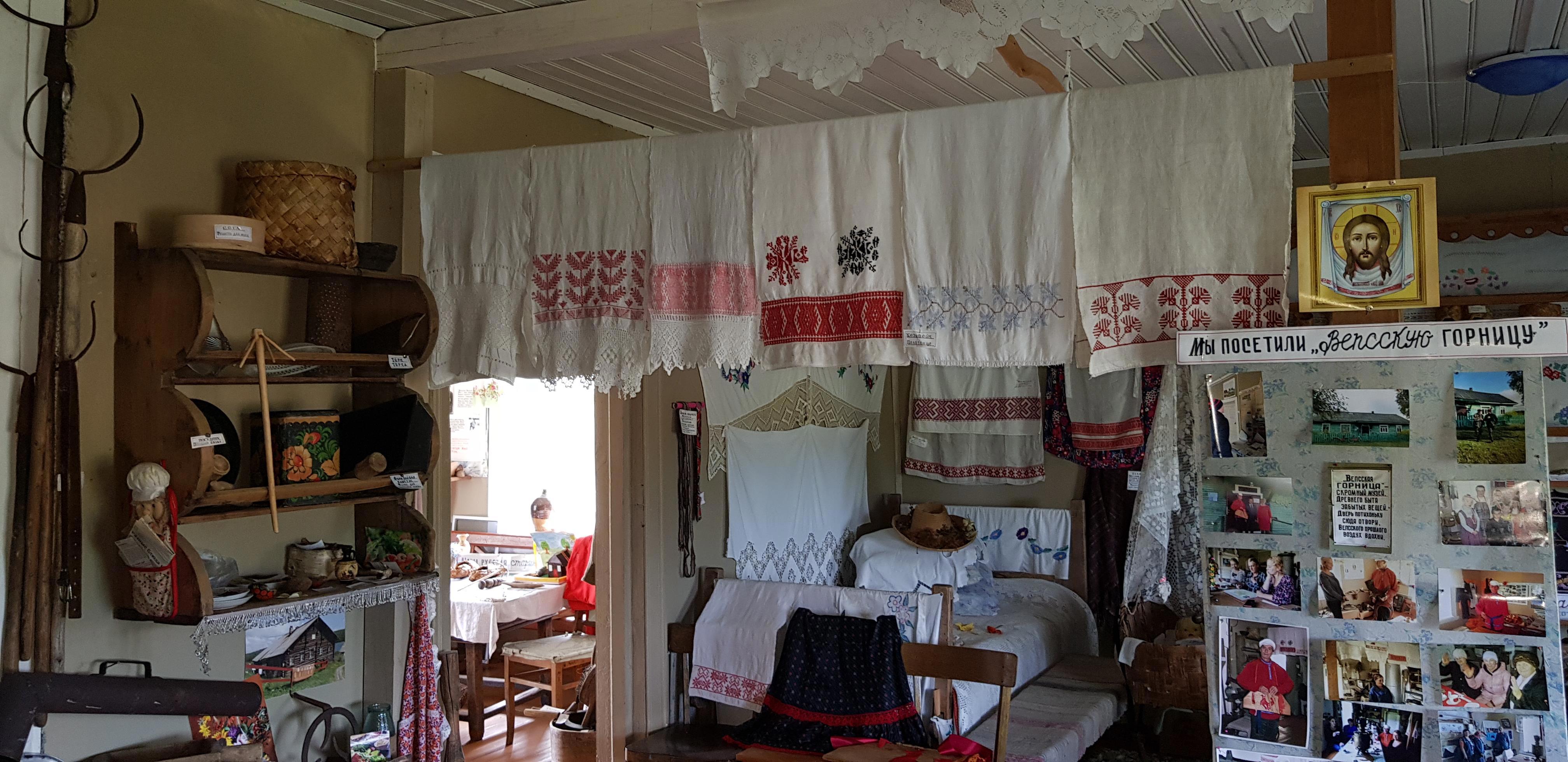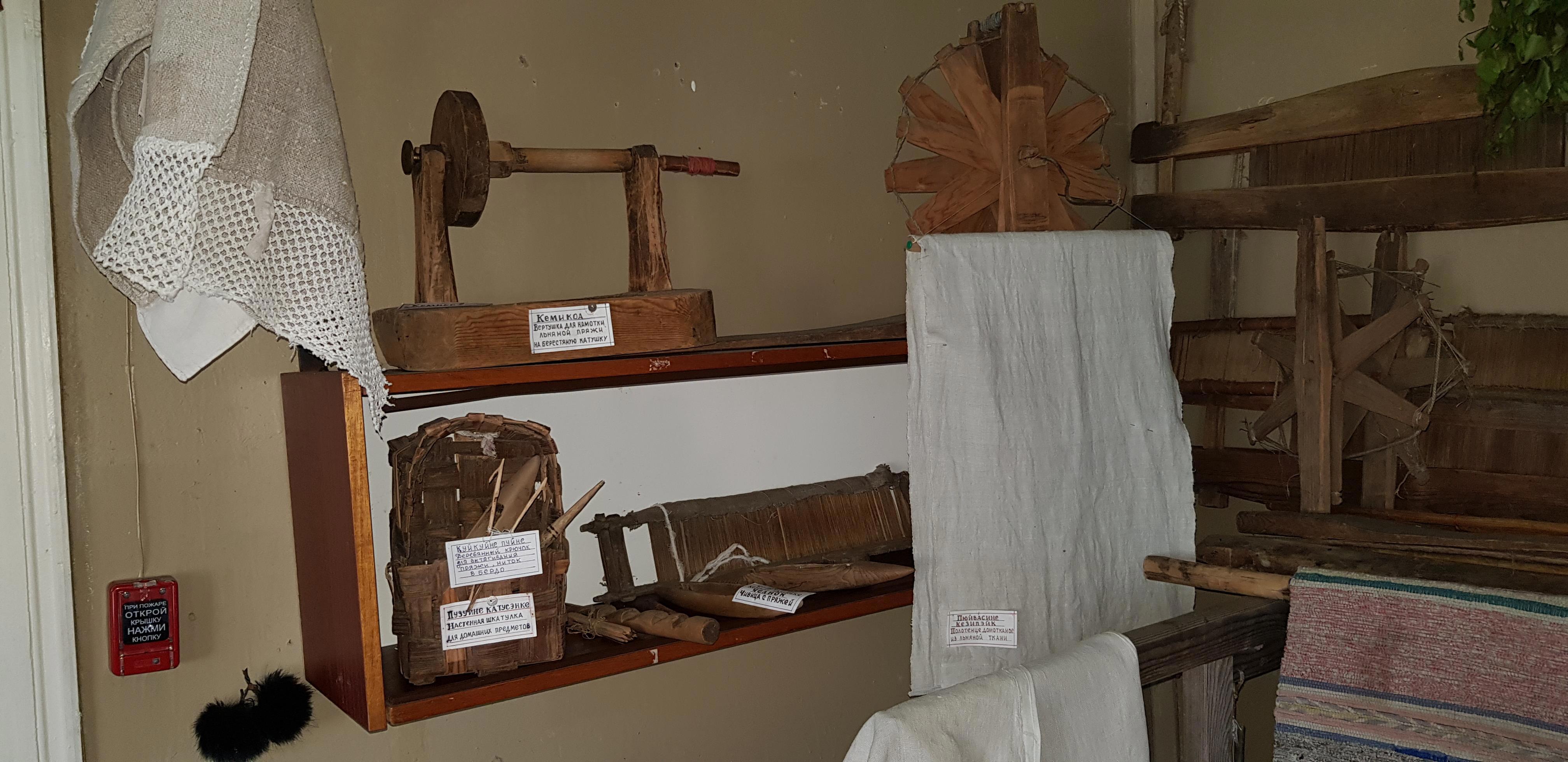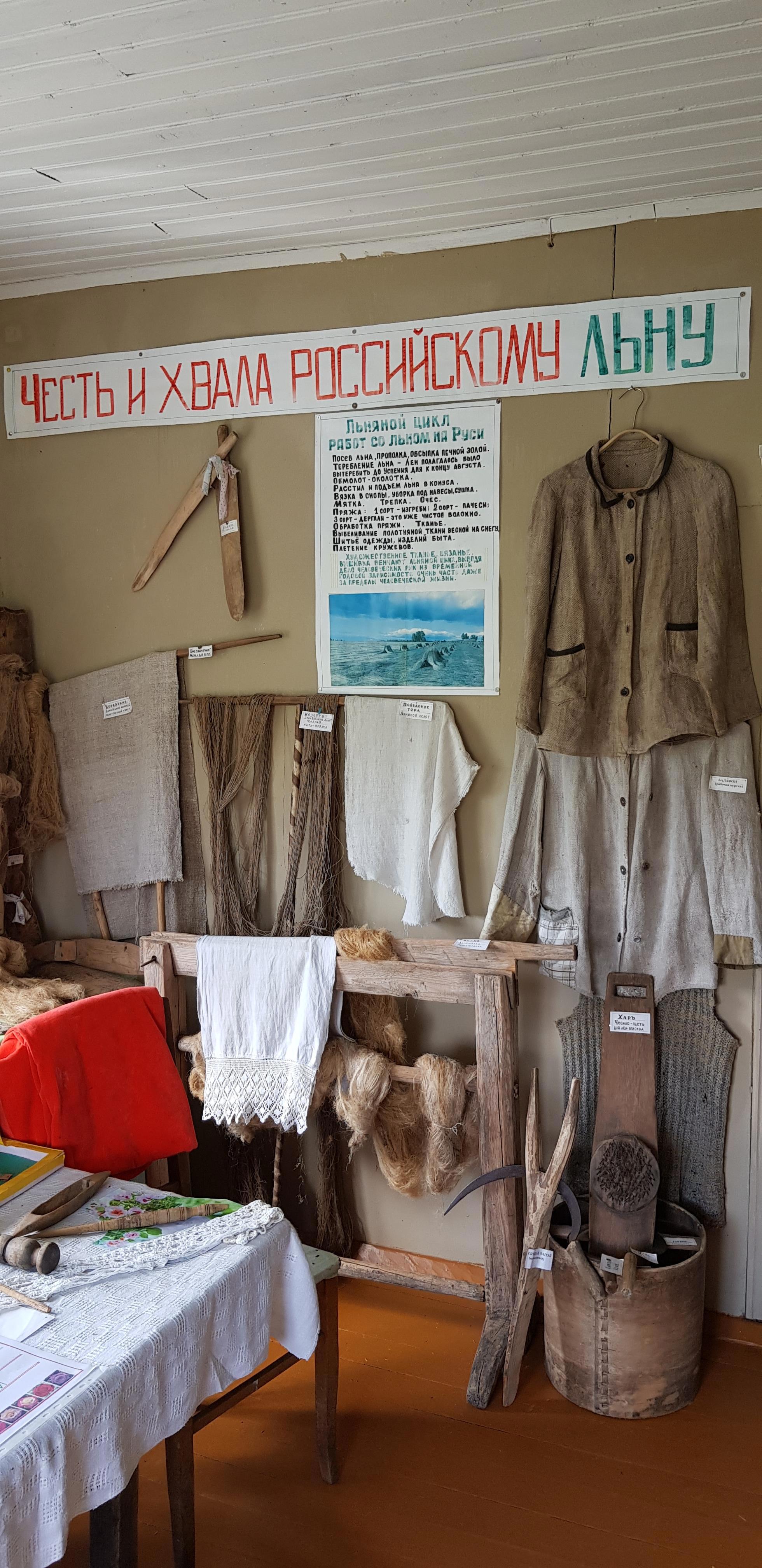 В "Горнице" собраны множество вещей, отданных в дар жителями окрестных деревень: предметы быта, ремесла, утварь, посуда... и даже два старых телефона стоят на окне. После прослушивания на патефоне столетней давности пластинки, где поет молодая Зыкина, не удивлюсь, если они тоже рабочие)))