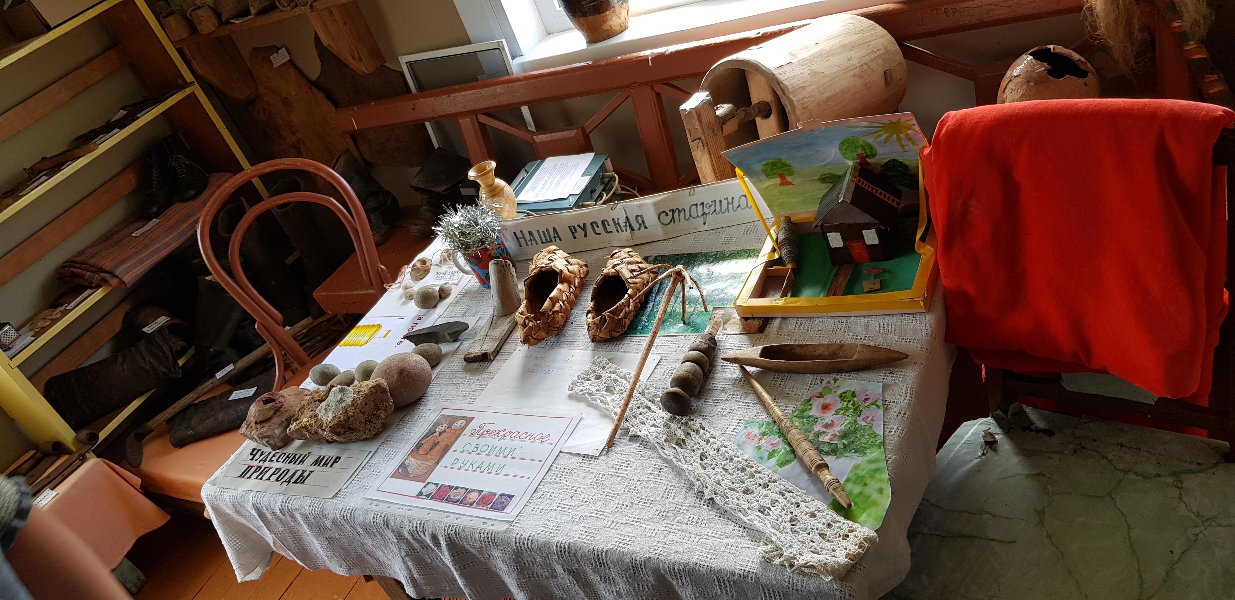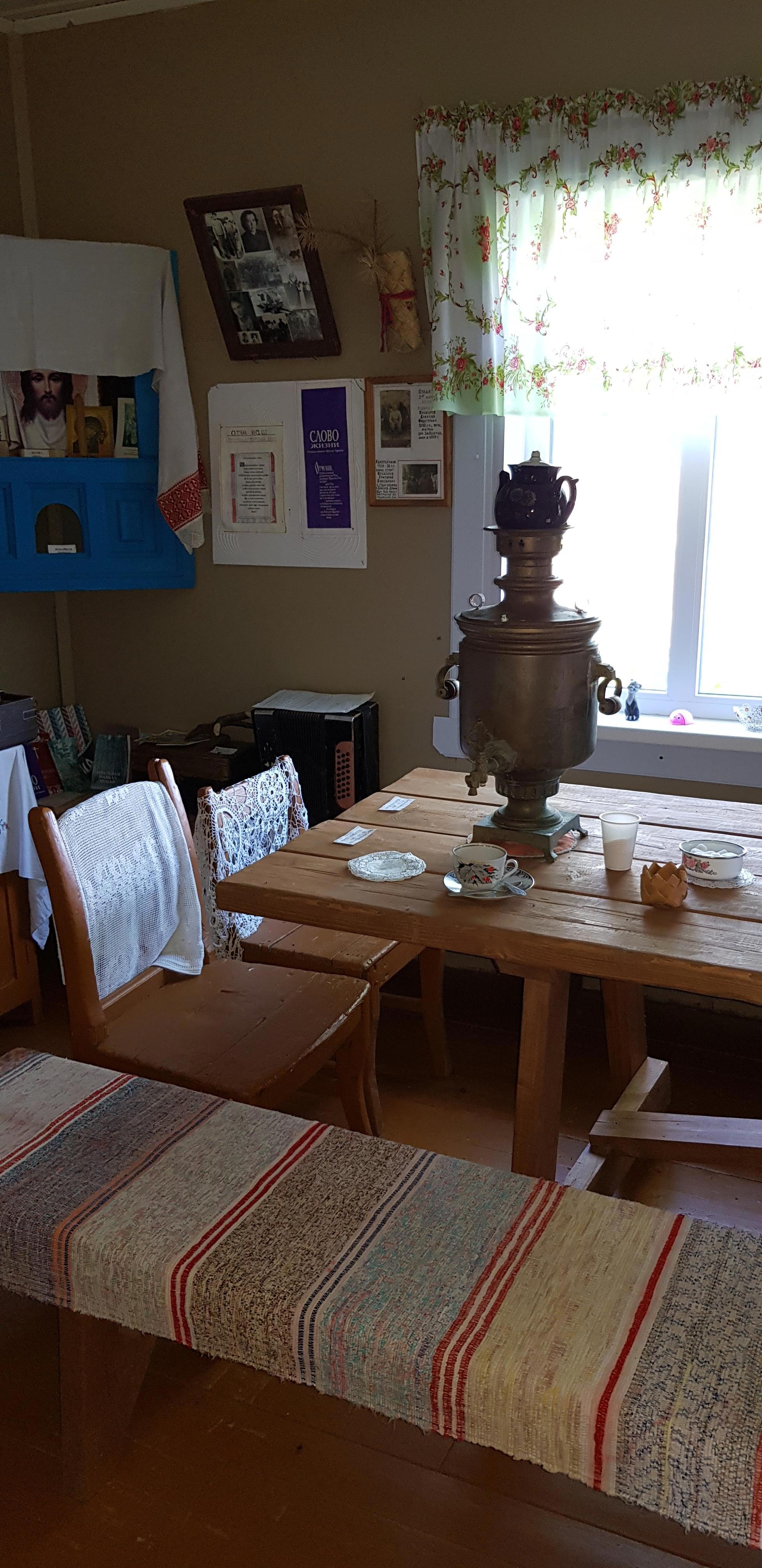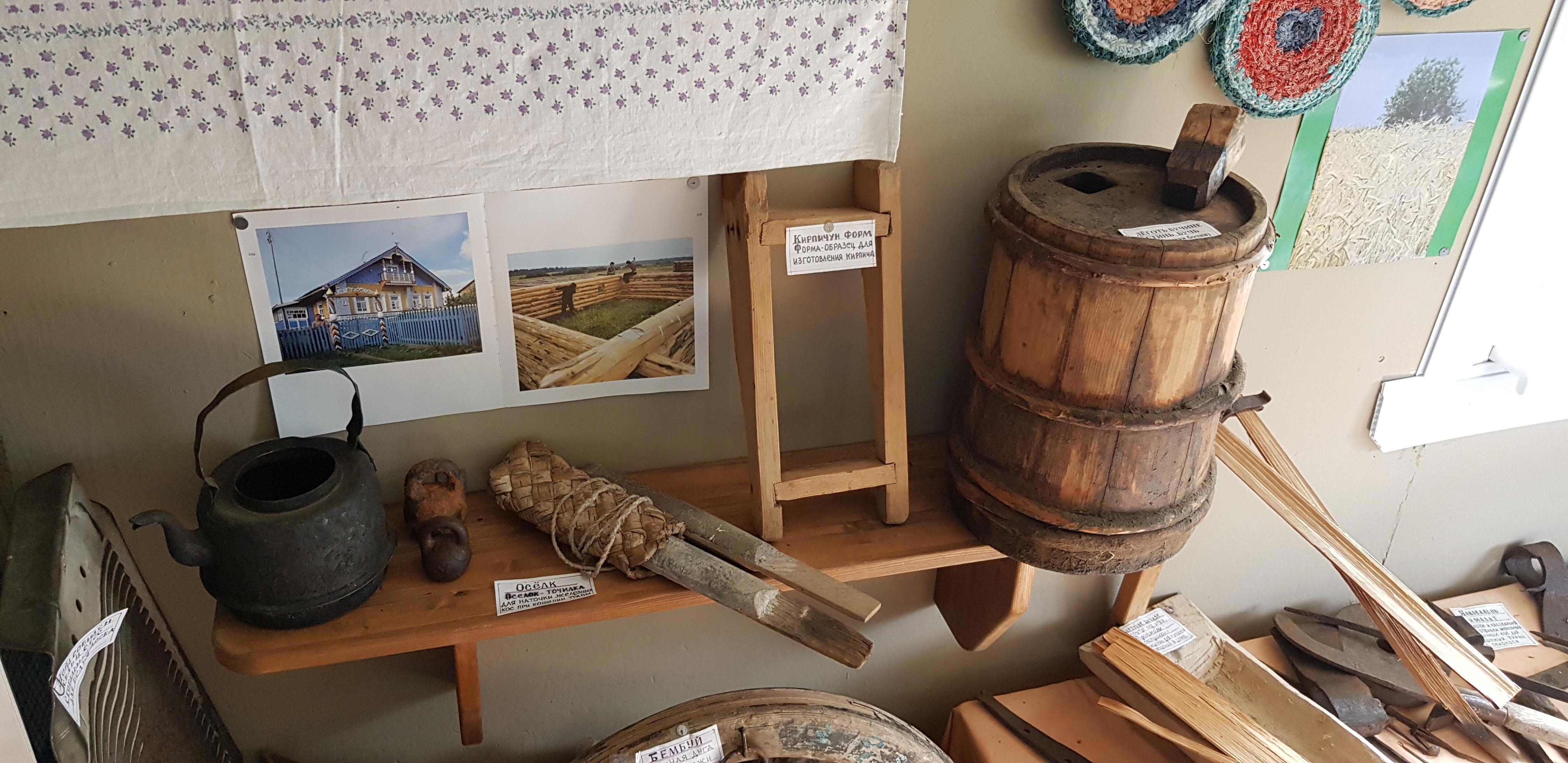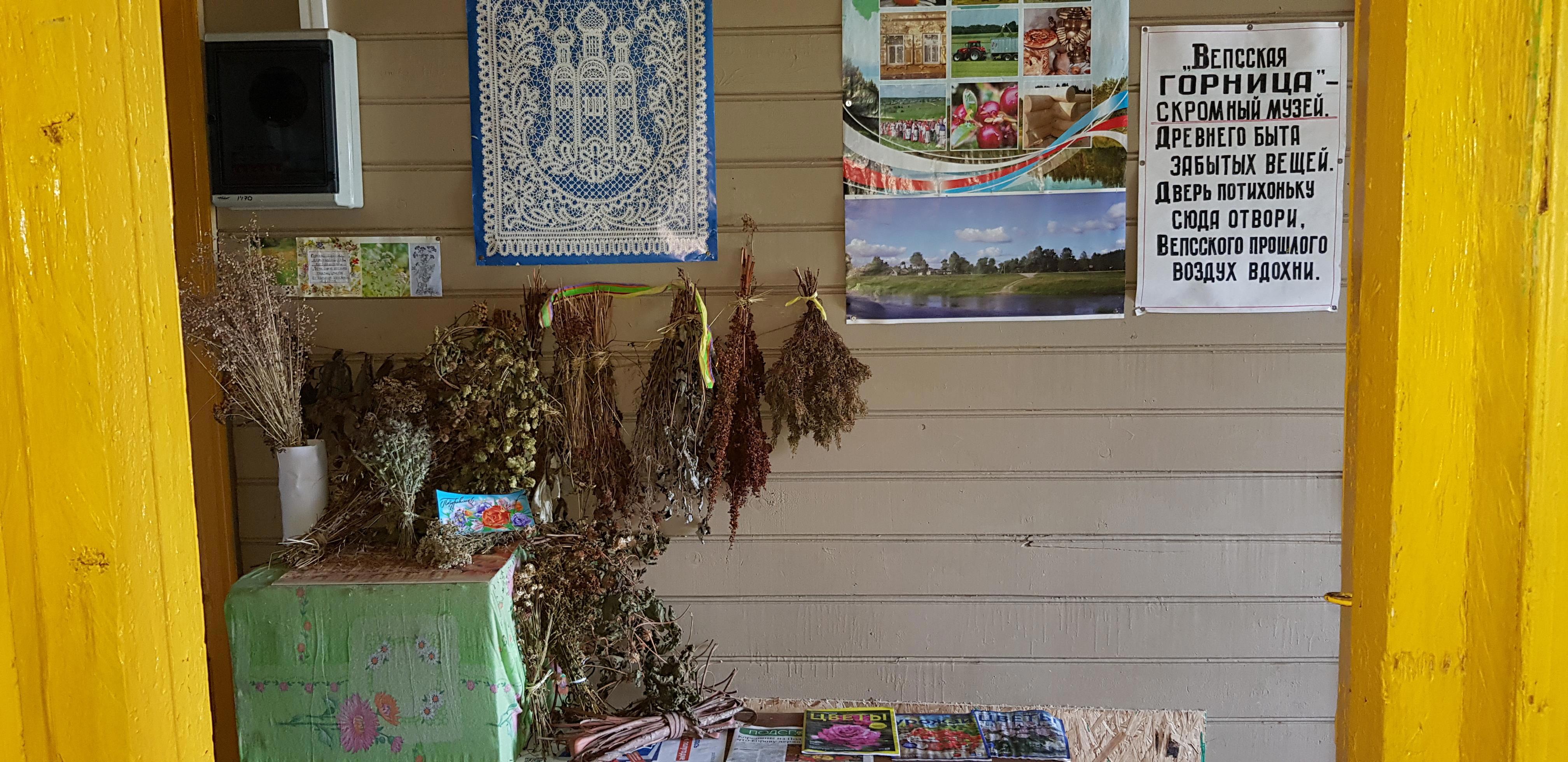 В "Горнице" собраны множество вещей, отданных в дар жителями окрестных деревень: предметы быта, ремесла, утварь, посуда... и даже два старых телефона стоят на окне. После прослушивания на патефоне столетней давности пластинки, где поет молодая Зыкина, не удивлюсь, если они тоже рабочие)))