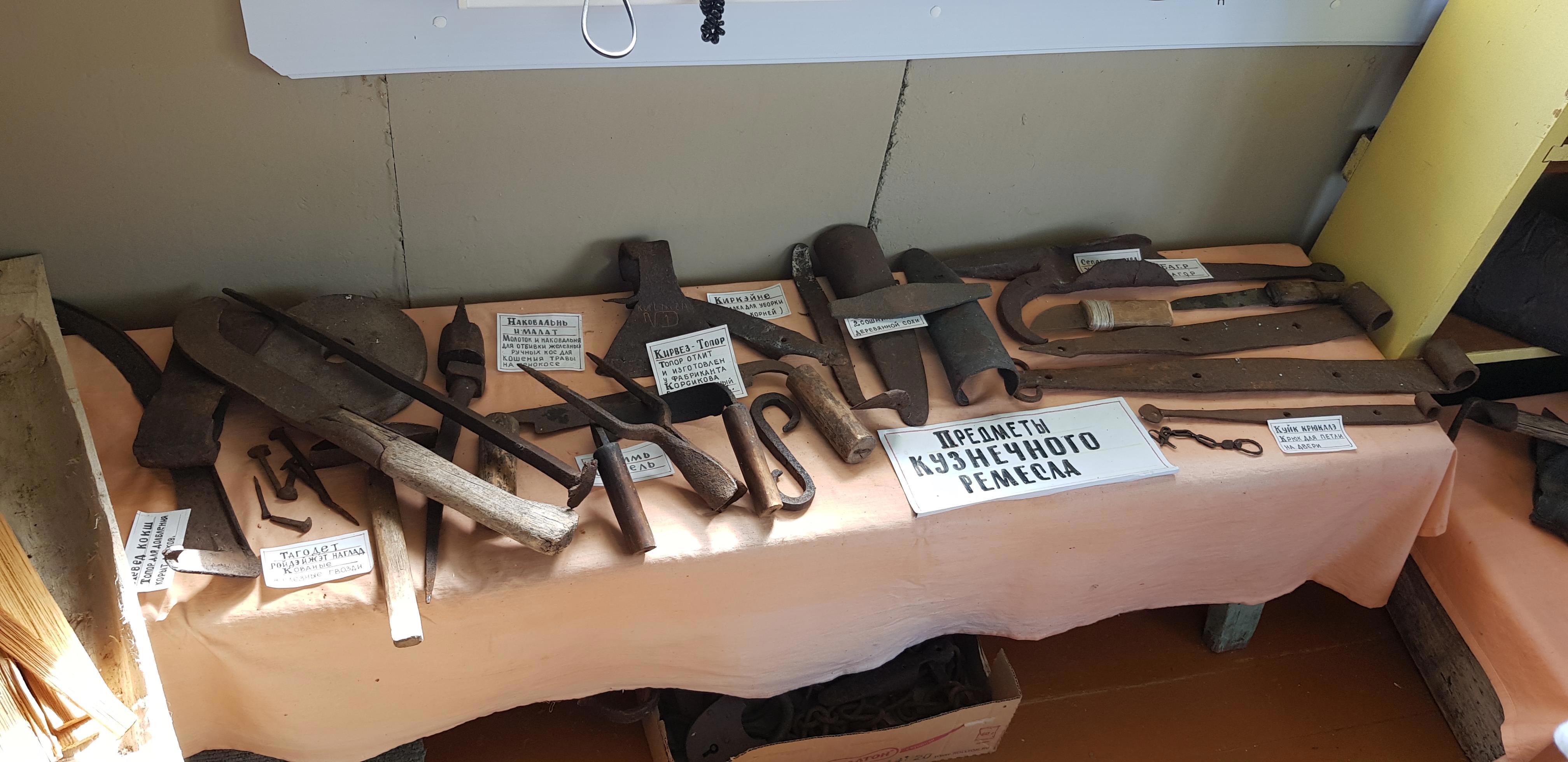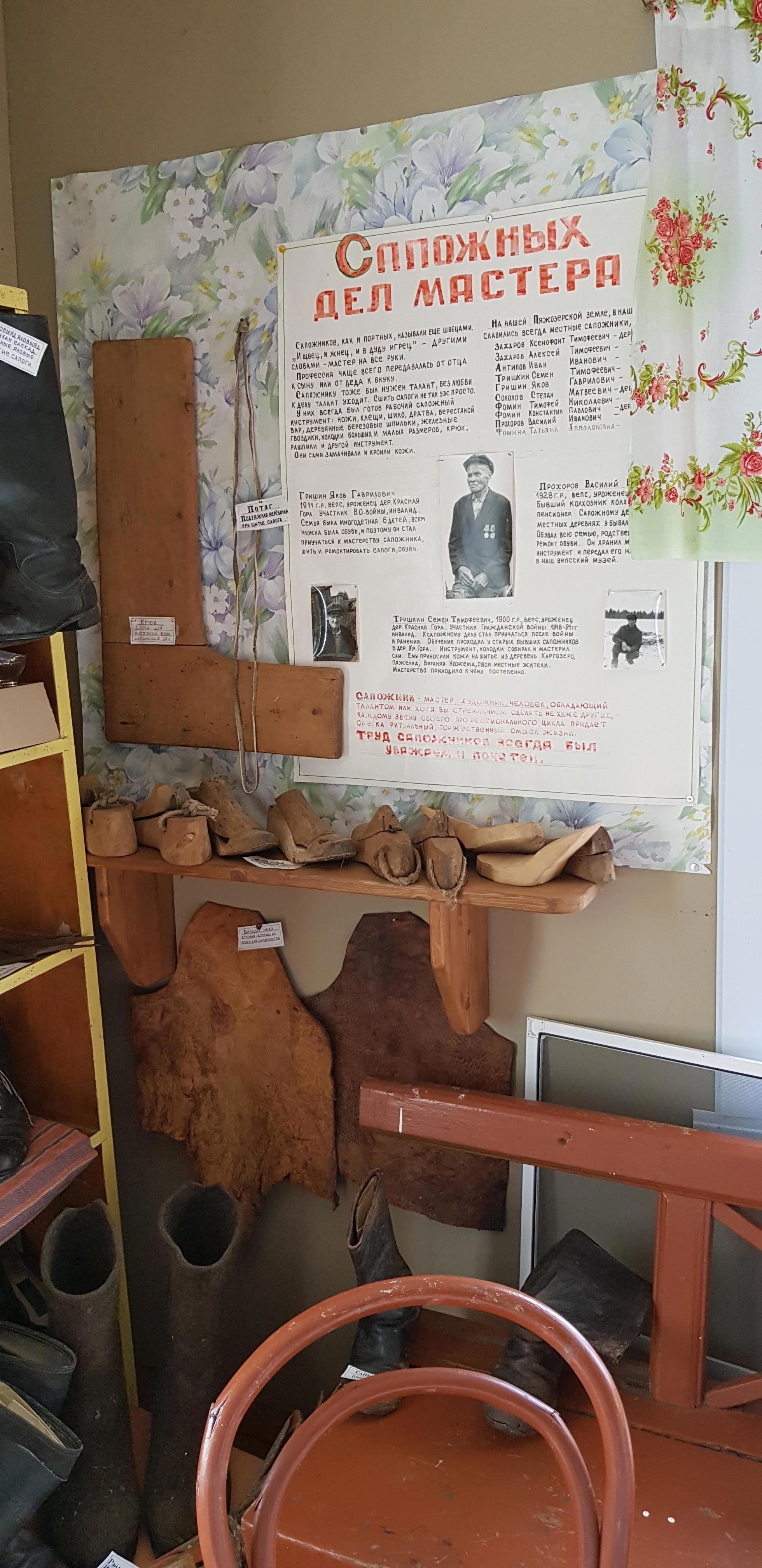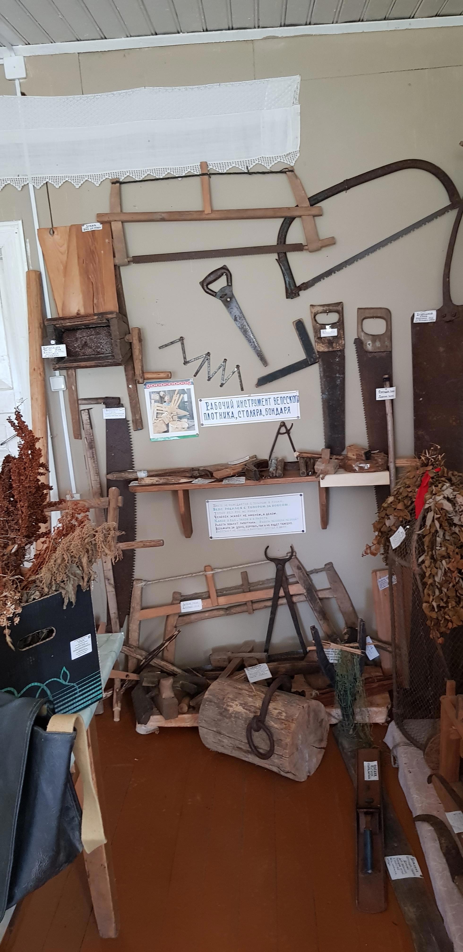 Часть экспозиции, посвящённая "мужским" занятиям – рыбной ловле, кузнечному делу, охоте, сапожному и столярному мастерству, плотницкому делу... Кстати, отец и дед заведующего музеем были сапожниками.