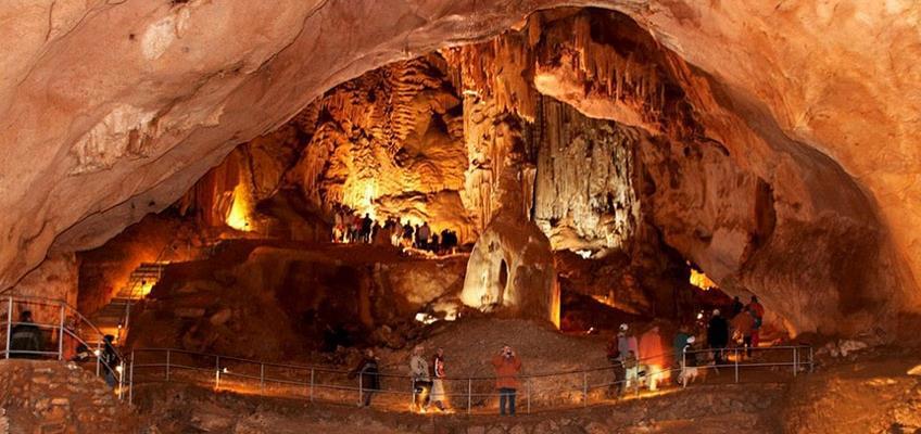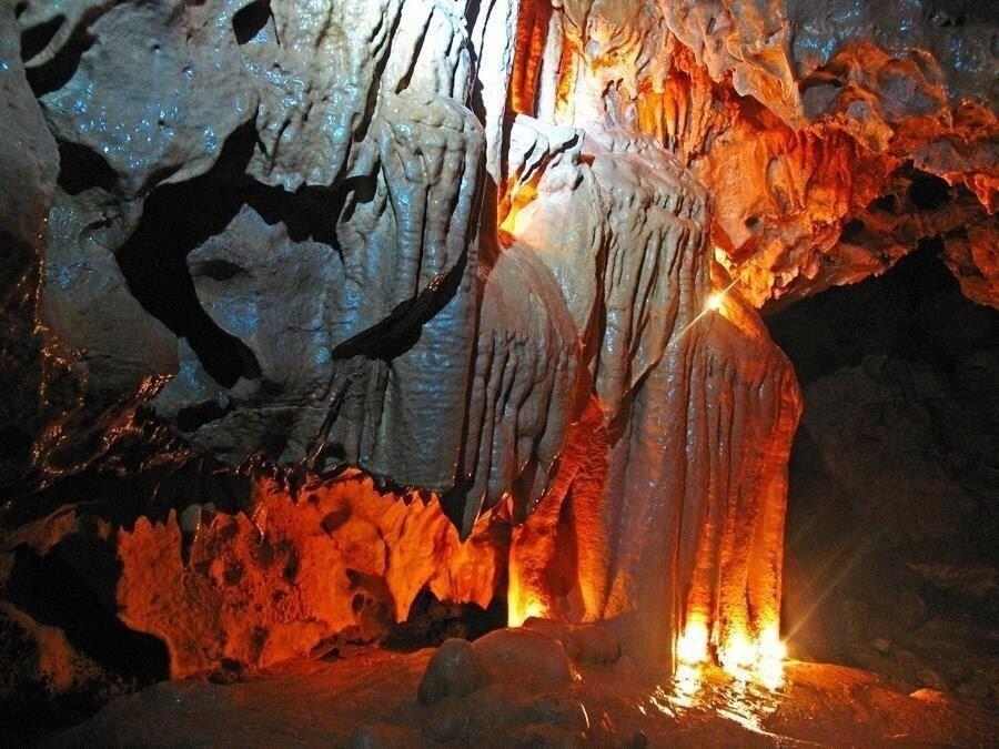 Примерно треть территории Крыма испещрена пещерами, поэтому неудивительно, что здесь тоже нашлось место для огромной пещерной системы, которая тянется на 25 километров. На Крымском полуострове имеется цепочка подземных гротов разной величины и выглядящих по-разному, а соединены они труднопроходимым и запутанным лабиринтом. Площадь Красной пещеры составляет 52 000 кв. м. Правда, туристов здесь пускают не далее, чем на 500 м вглубь пещеры, да и то обязательно в присутствии гида.Эта пещера неизменно привлекает внимание спелеологов, исследующих причудливые натёки на стенах пещеры и огромные сталагмиты. По пещере протекает река с очень чистой водой – настолько прозрачной, что о её наличии иногда можно догадаться только по бликам света.