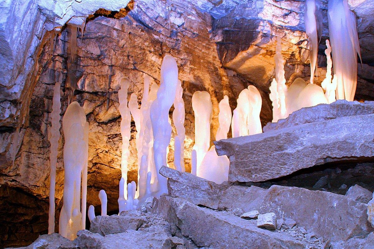Айсризенвельт является крупнейшей в мире ледяной пещерой, где круглый год поддерживается отрицательная температура. Пещера тянется на 42 километра, опускаясь на глубину 407 метров. Люди давно догадывались о её существовании, но открыл её натуралист Антон фон Поссельт-Кцорих в 1879 году. Тщательно её исследовал местный спелеолог Александр фон Мёрк, погибший в Первую мировую войну и похороненный в одной из ниш этой пещеры. Сейчас пещера Айсризенвельт стала заметной туристической достопримечательностью. Самая первая экскурсия сюда была проведена в 1920 году, а в наши дни её посещают около 150 000 человек с мая по октябрь, зимой же сюда вход закрыт по причине опасности схода лавин.