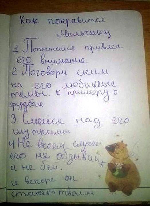 Я б ещё добавил: "Если ты от природы умна - ни в коем случае не показывай ему этого. Т.е., он должен это знать, просто не нужно демонстрировать. Так, пару раз в квартал - достаточно. Он запомнит"