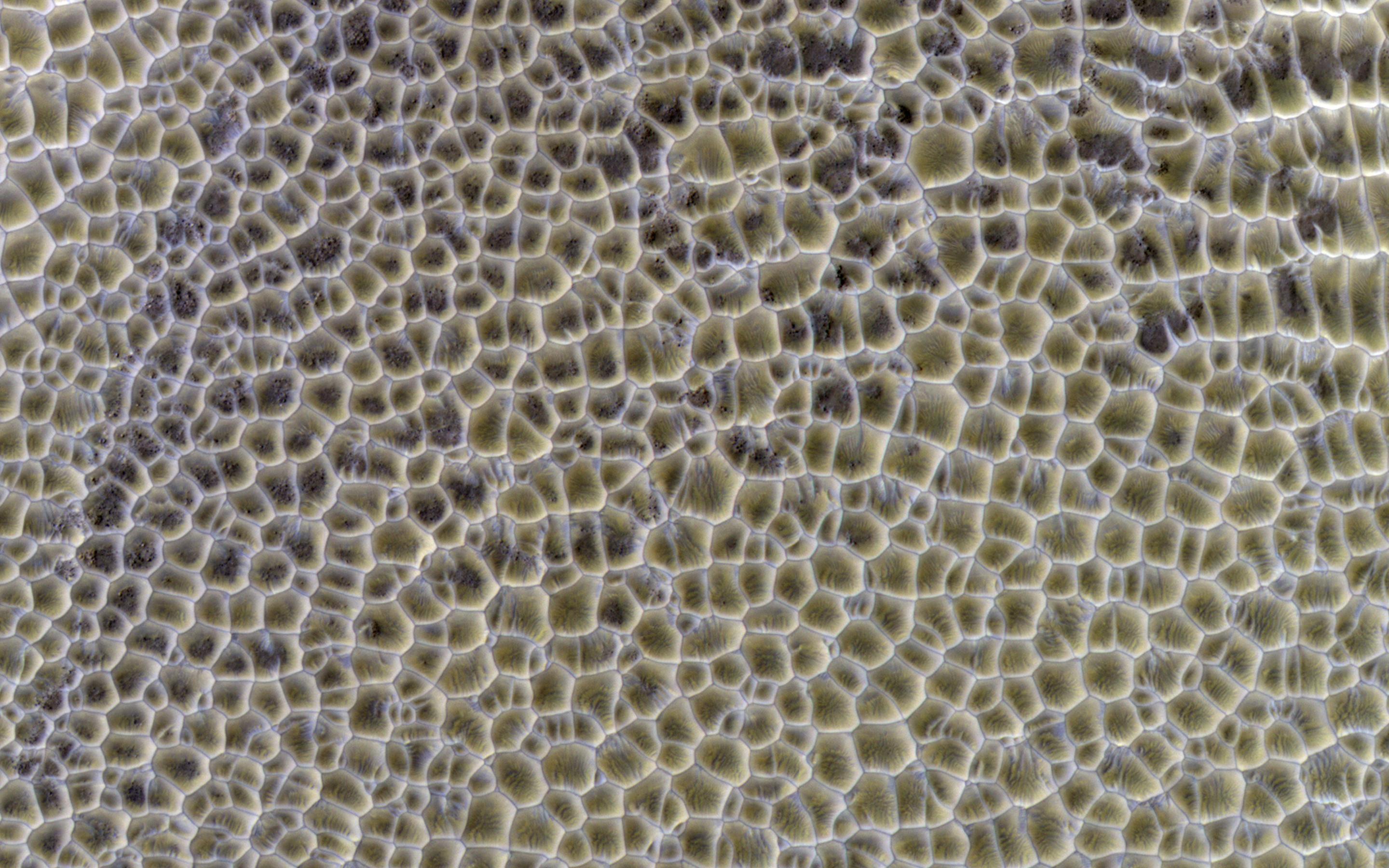 Симметричные дюны внутри одного из кратеров. Будто поля, вспаханные огромным трактором