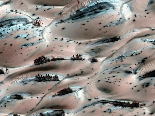 Нет, это не деревья: это более тёмный песок, сползающий по дюнам. Присмотритесь, он не отбрасывает тени.