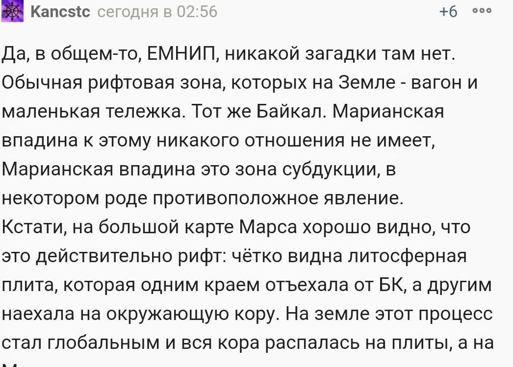 N.B. Интересно, что Марианская впадина на Земле, также имеет большое сходство с ущельем.