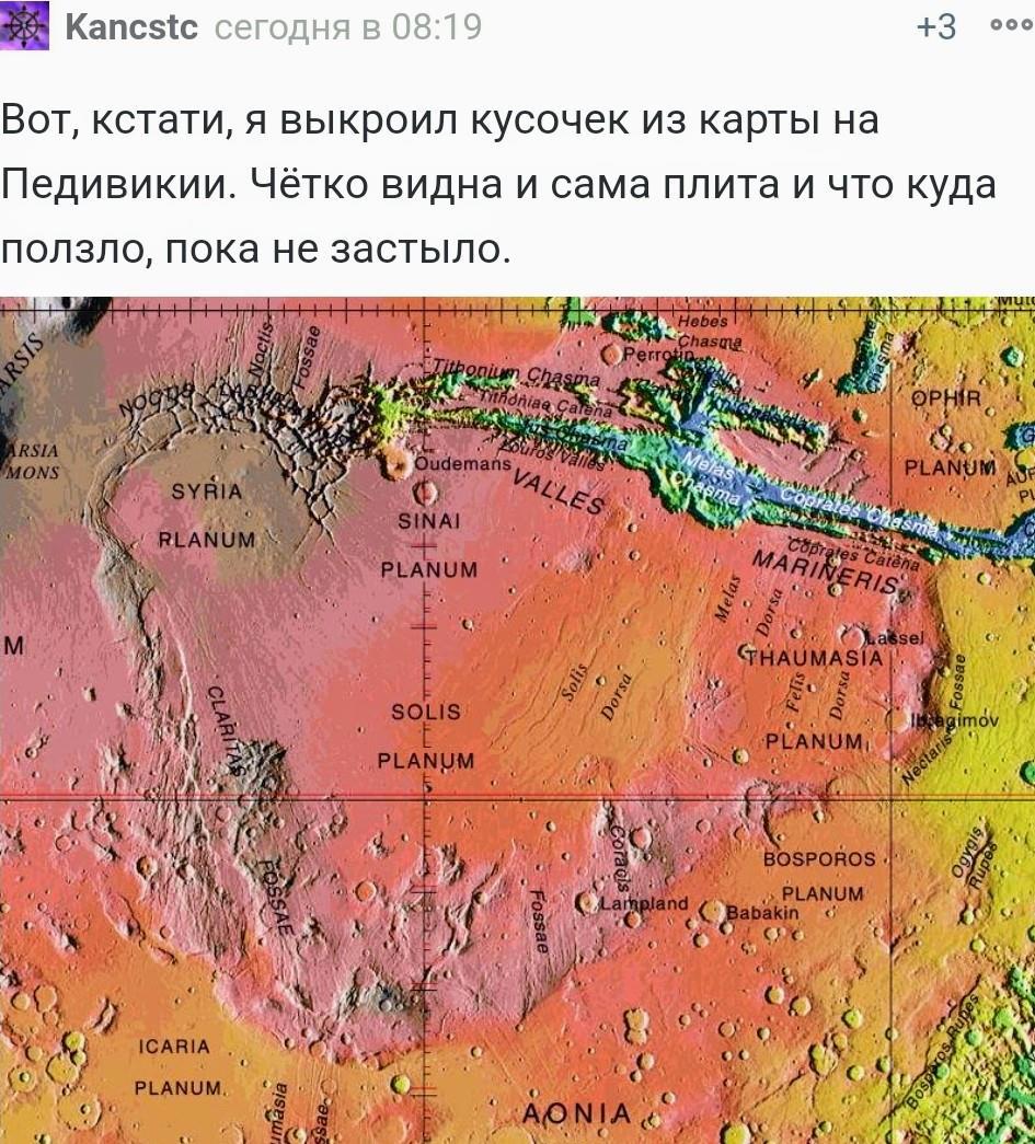 Например, Марс, похоже, сейчас тектонически вымер, его кора слилась в один отдельный слой, который покрывает внутреннюю часть планеты. Это в отличие от Земли, кора которой разделена на плиты, которые могут смещаться, что влечет за собой целый ряд последствий.Ученые считают, что долины Маринерис образовались еще тогда, когда на Марсе действительно были тектонические плиты. Недавние исследования показали, что система каньонов образовалась в результате расширения трещины между плитами давным-давно. Это делает долину Маринерис действительно очень интересной.