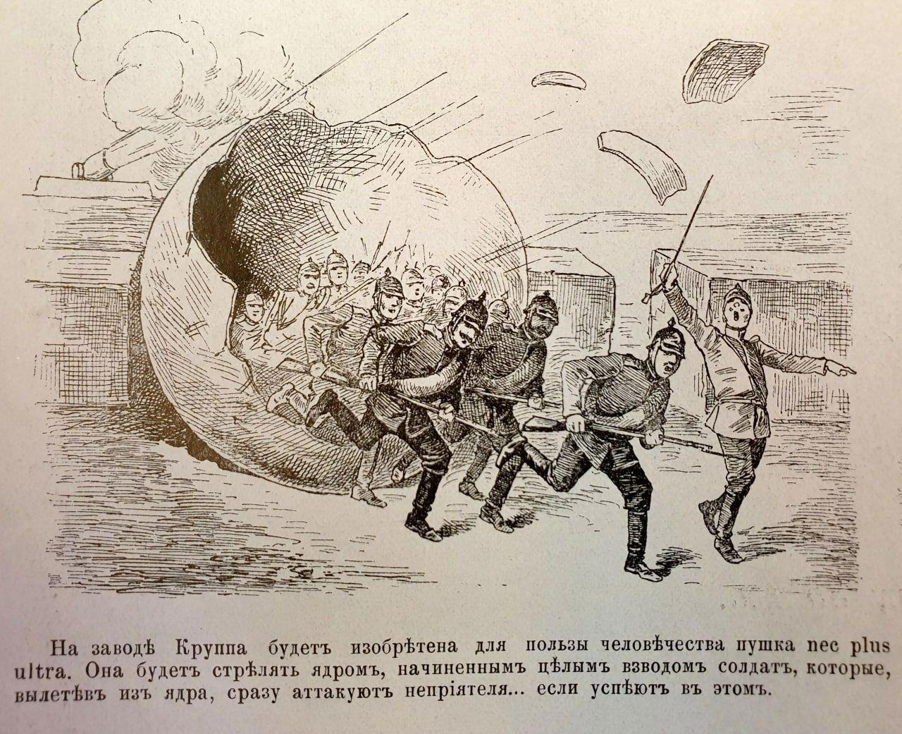 На заводе Круппа будет изобретена для пользы человечества nec plus ultra. Она будет стрелять ядром, начиненным целым взводом солдат, которые, вылетев из ядра, сразу атакуют неприятиля… если успеют в этом.