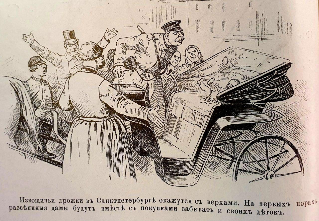 Извощичьи дрожки в Санкт-Петербурге окажутся с верхами. На первых порах рассеянные дамы будут вместе с покупками забывать и своих деток.
