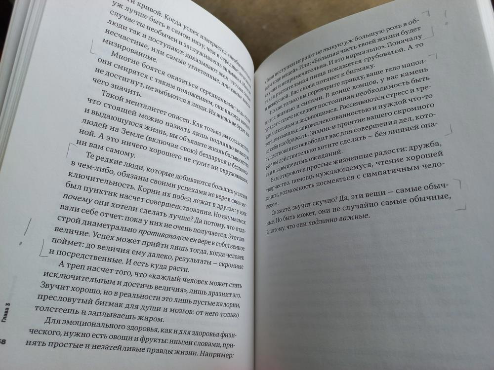 Мэнсон не рисует единый для всех путь к успеху, не даёт универсальных рецептов счастья, более того – утверждает, что любой выбор сопряжён с определённым количеством трудностей и боли. Но он призывает к осознанности этого выбора. И, как мне кажется, именно в этой осознанности кроется путь к внутренней гармонии.