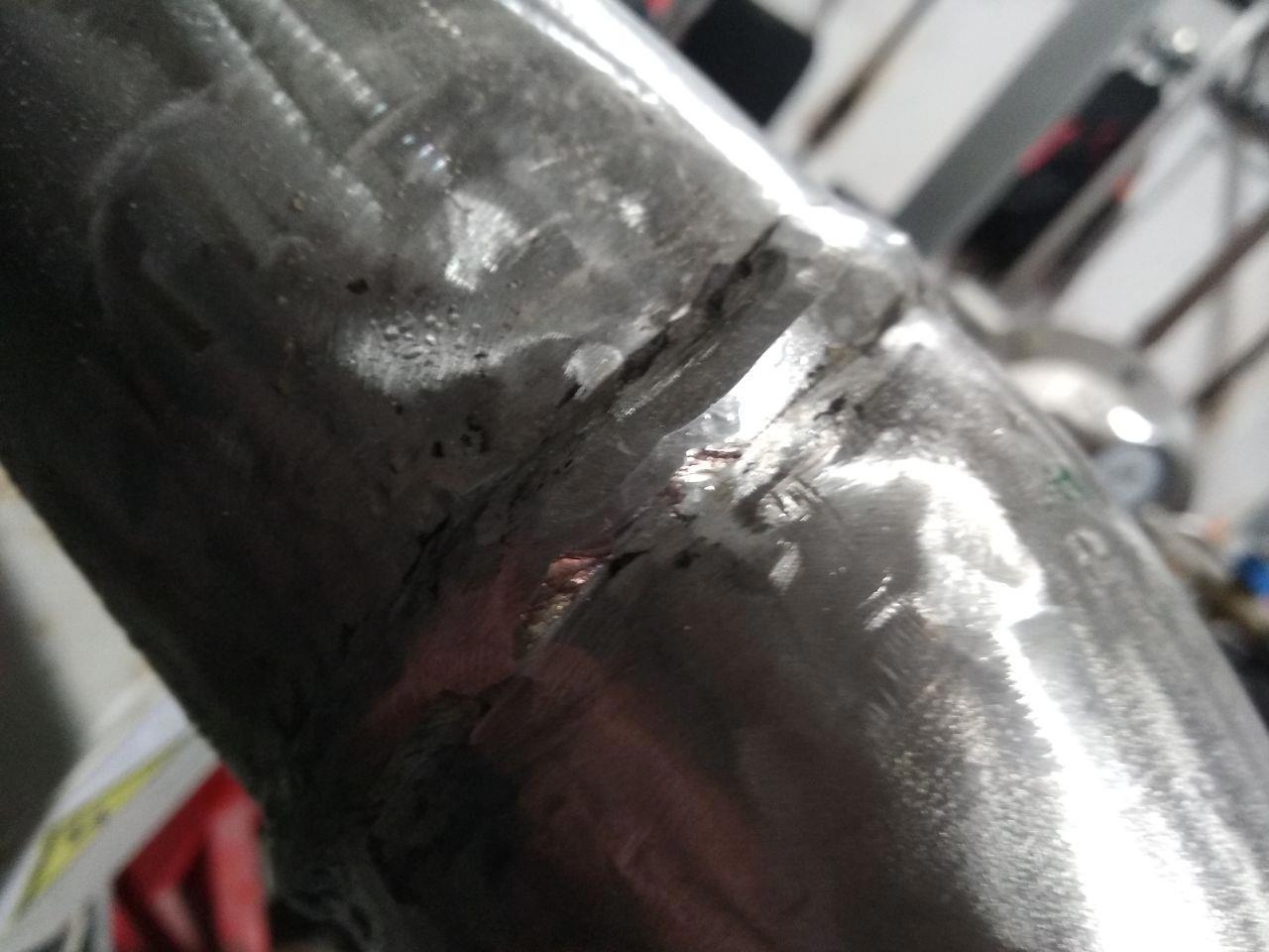 А вот так, например, были сварены отходящие трубы нашего агрегата на одной из станций. Надеюсь, что те, кто что-то понимают в сварке, не разобьют себе лицо челодланью. ) И да - это нержавейка. Заваренная голимой дугой. Обычным железным электродом. Гениально.