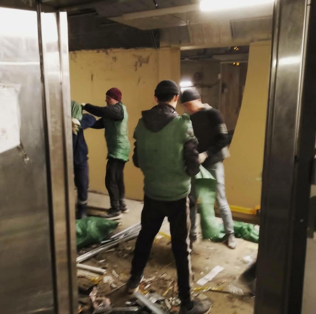 Шёл второй день ковыряния в щите, причём речь уже шла о труде "до победы", т.е. как минимум на всю ночь. И вот, где-то к часу ночи все звуки работы - шум электроинструментов и скупые перебранки на тюркском наречии - понемногу затихли. Все работники дневной смены как-то резко рассосались. И так же резко возникли их соплеменники, только более молчаливые, и одетые в повседневные шмотки неброских цветов. Оказалось, что они пришли на уборку строительного мусора, скопившегося за день.