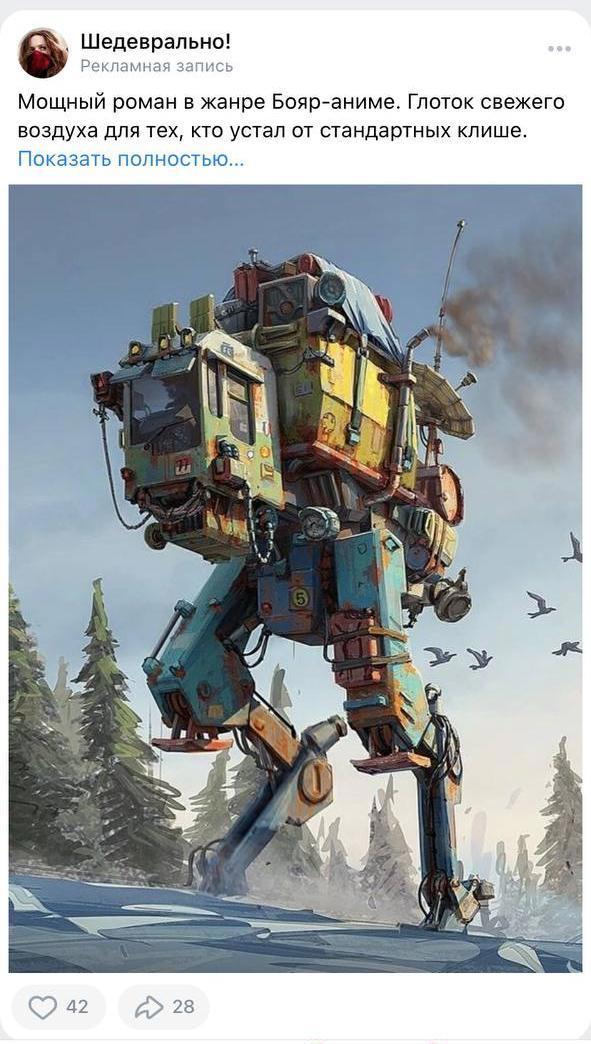 А вот и из ВК рекламу подвезли. Я там не сижу, приносят агенты. Что это за шагоход и как он относится к боярке — загадка.