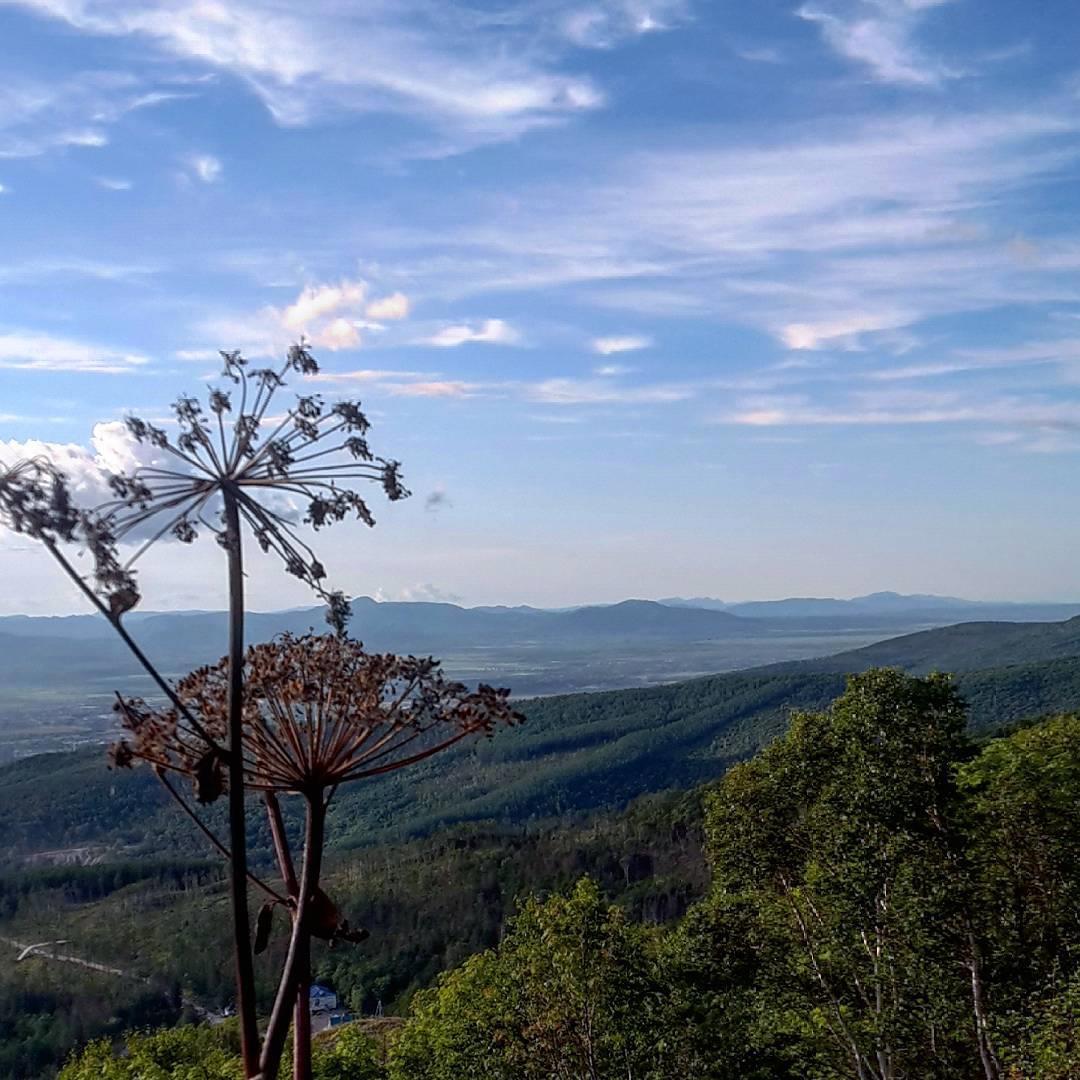 На переднем фоне - т.н. медвежья дудка, которая похожа на проклятый борщивек, но куда менее жгучий, зато сильно более здоровый (3-4 метра и зонтик сантиметров 40 в диаметре).
