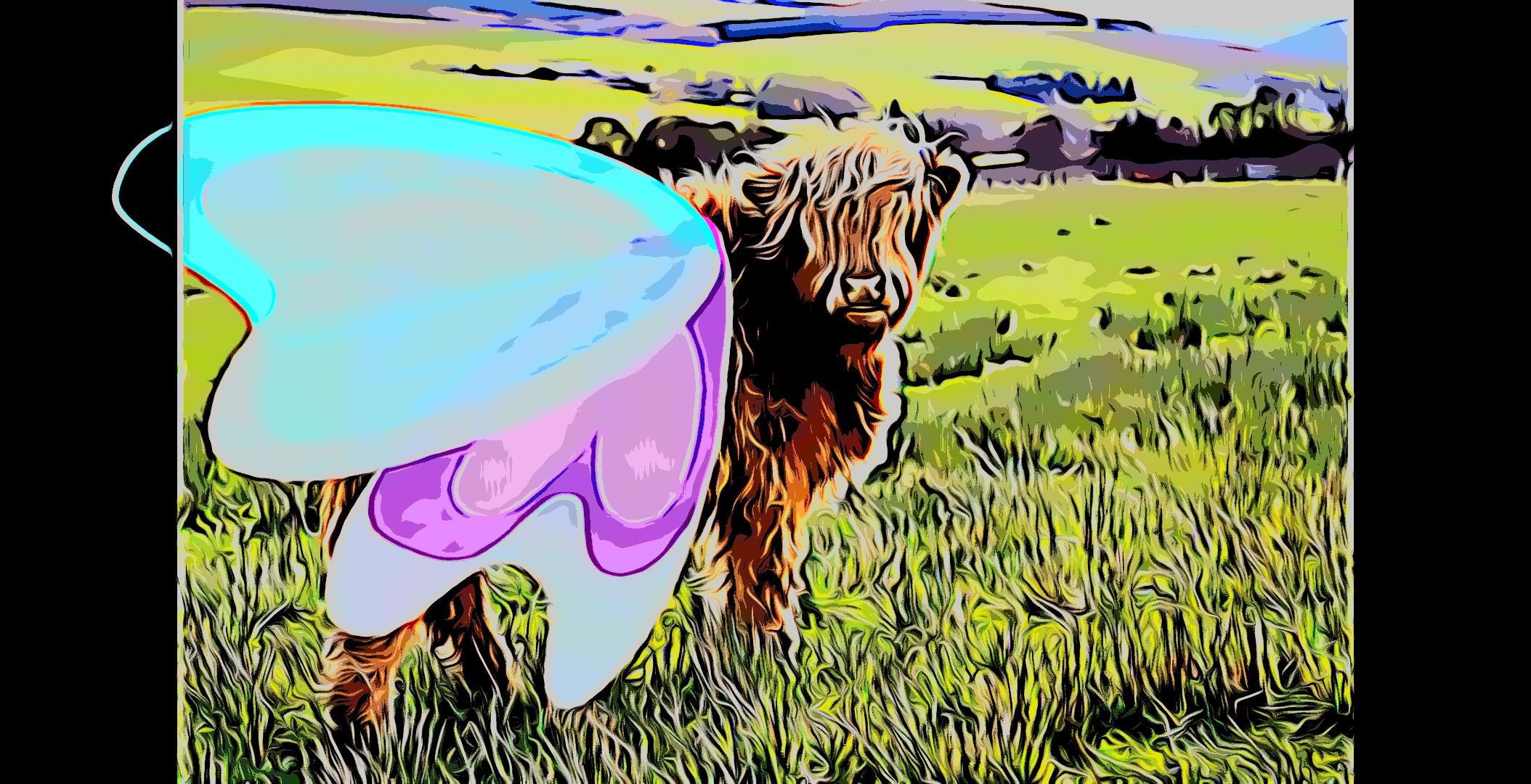 Здесь мальчик изобразил момент, когда телёнок склисса собрался с ним познакомиться, отбившись от стада, летящего в сторону «луга»