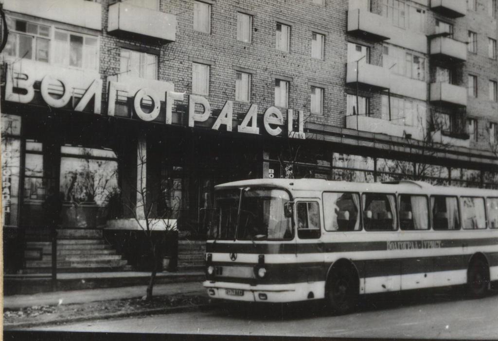 Зато есть такая, сделанная на рубеже семидесятых-восьмидесятых годов двадцатого века, когда на другой стороне улицы Рокоссовского, напротив Красных казарм, были построены новые дома с шикарнейшими для того времени магазинами "Русское поле" (продуктовый), "Волгоградец" (промтоварный) и "Орбита" (телерадиотовары):