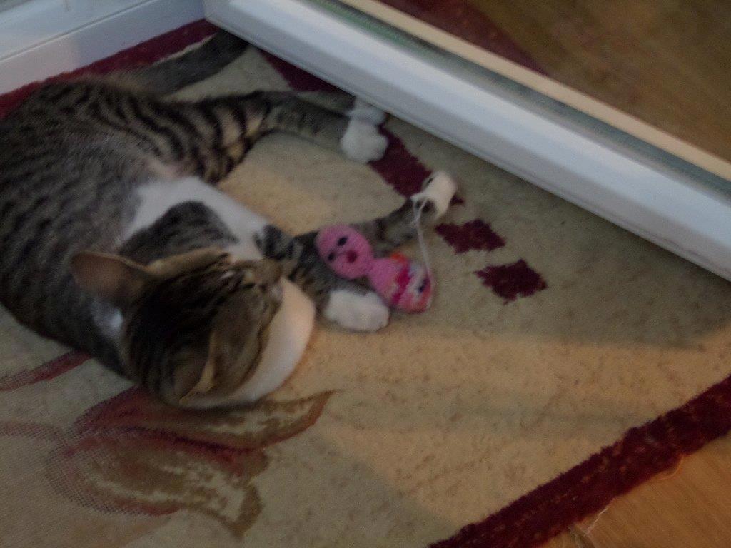 Однажды, когда он по своему новому обычаю лежал у порога, к нему подкатилась Кузина куколка. Он несколько секунд рассматривал ее, пытаясь понять, это еще что за фигня? А потом как начал с ней играть, подкидывая ее вверх и кувыркаясь вместе с ней.