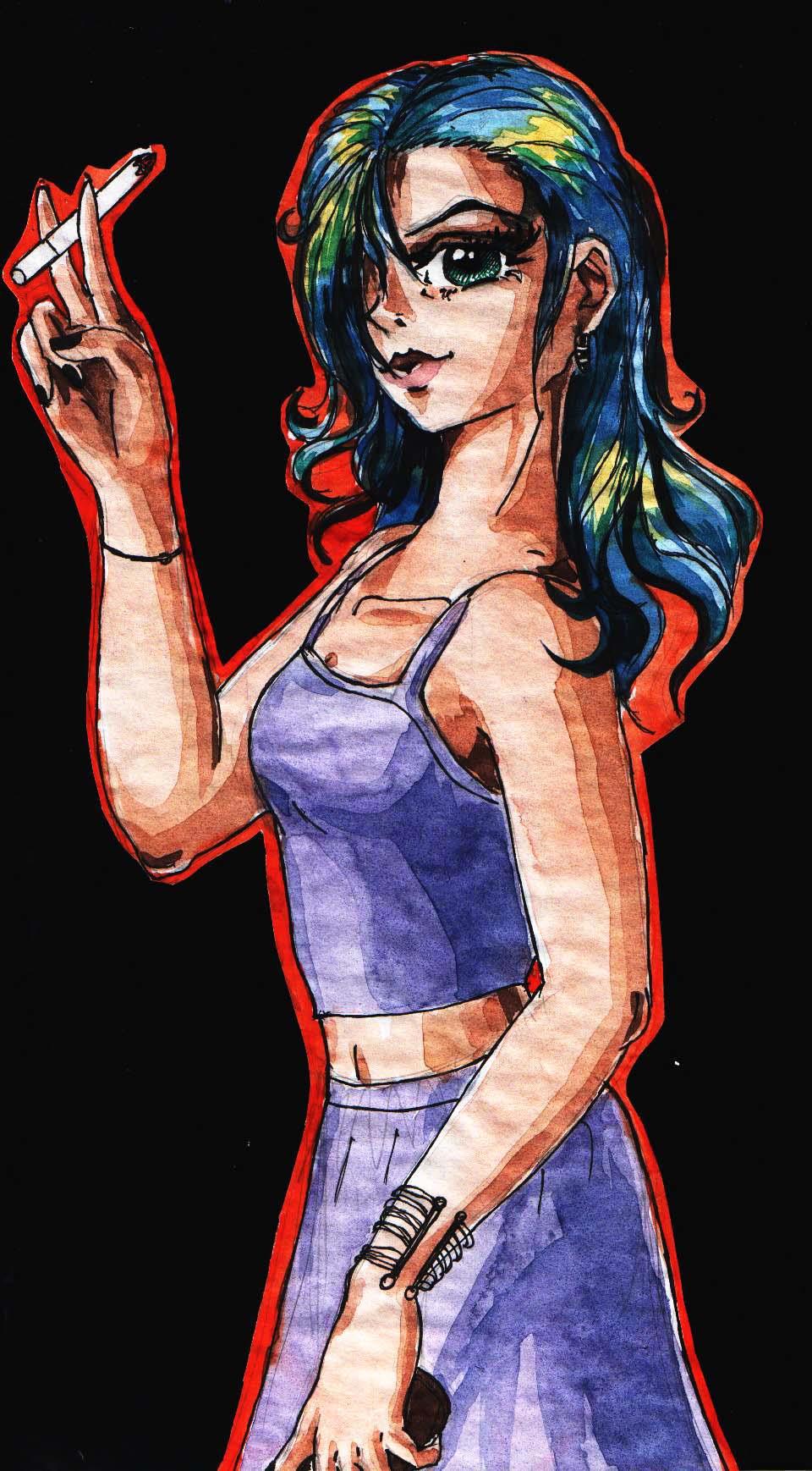 2004 год. Аниме, клуб, где я познакомилась с Дэшем). Планшета у меня еще нет, рисую акварелью и фломастерами. Бумага - всегда говно, зато бесплатная (дедуля работал сторожем в банке, ему кучу всего отдавали просто так)