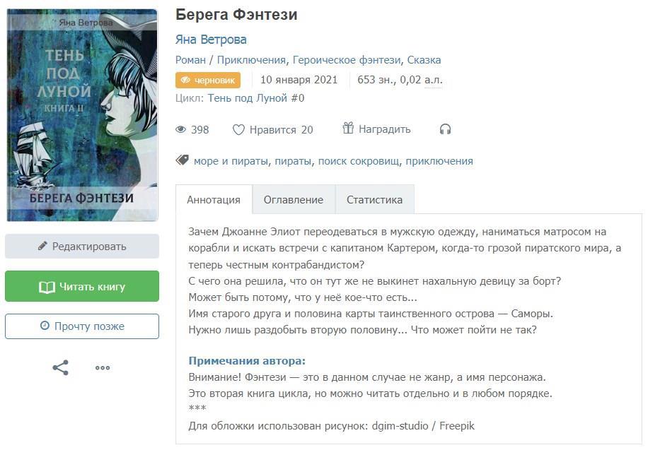 Автор: Яна ВетроваПонимаете, вместо писать можно делать обложку.