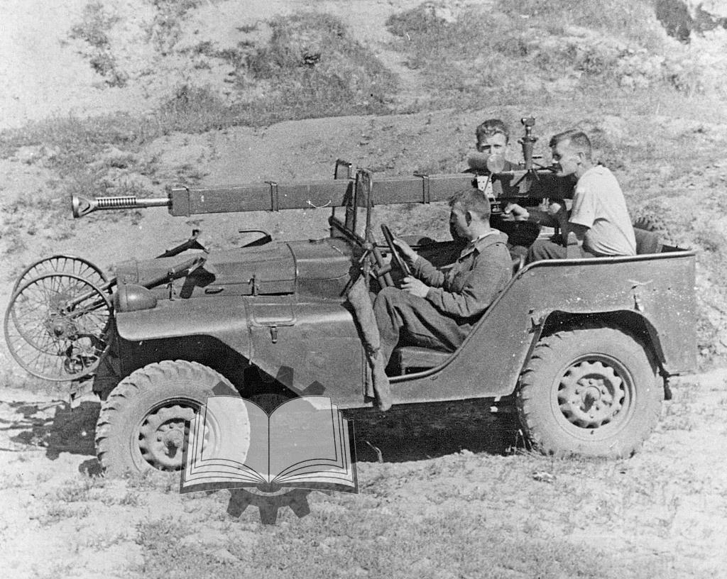 Окончательно допилить ЧК удалось только к началу 1944 года. Всего на полигон поступило четыре пушки – и обрадованные испытатели принялись над ними по-всякому издеваться. Пушки ставили на машины – «додж», Газ-64 «Пигмей» и «Виллис». Причем из «виллиса» с «пигмеем» получалось даже стрелять. Еще пушку удалось взгромоздить на коляску к лед-лизовскому «харлею» – тут уж стрелять не решились. Напоследок пушки протащили на телеге и санях и приступили к собственно десантированию. Для кидания были выделены три самолета – Ил-4, Ли-2 и ТБ-3, но кидать решили только с первых двух. Под ТБ-3 подвесили два «виллиса», посмотрели – и решили, что во время полета пушки лучше все-таки прятать в фюзеляж.