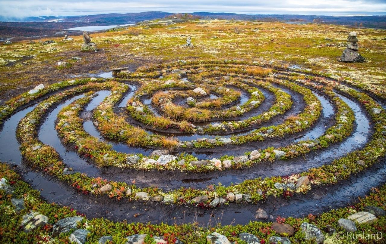 …и каменные лабиринты («вавилоны» на монашеском языке), вроде вот такого красавца с острова Заяцкого из Соловков:
