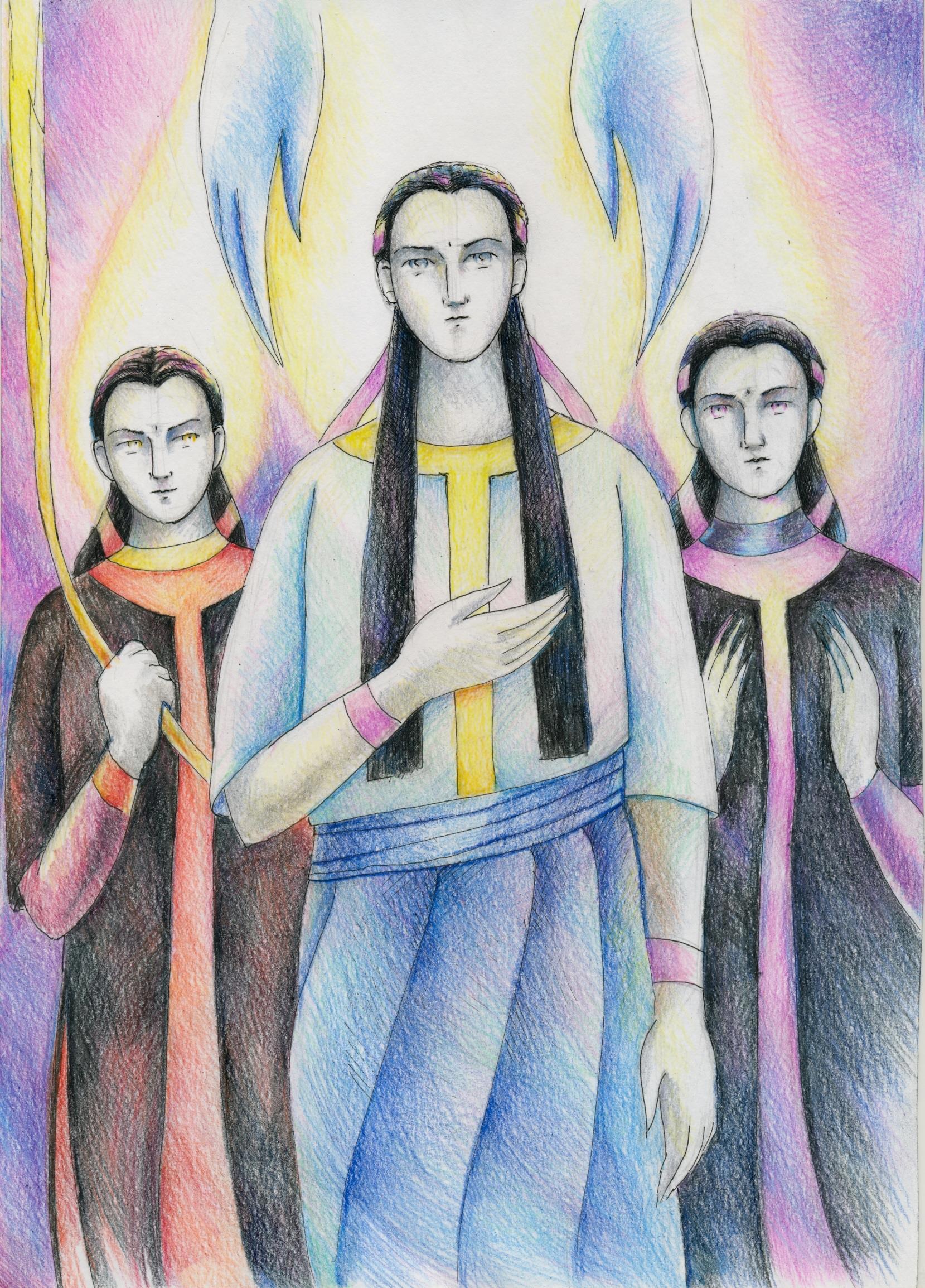 Наследники Гаэ Онсарры - слева направо: первый Сэле - Сэллас Салангури, Альбра и Аноа Хинц, первая Гейст - Ханая, Элейша