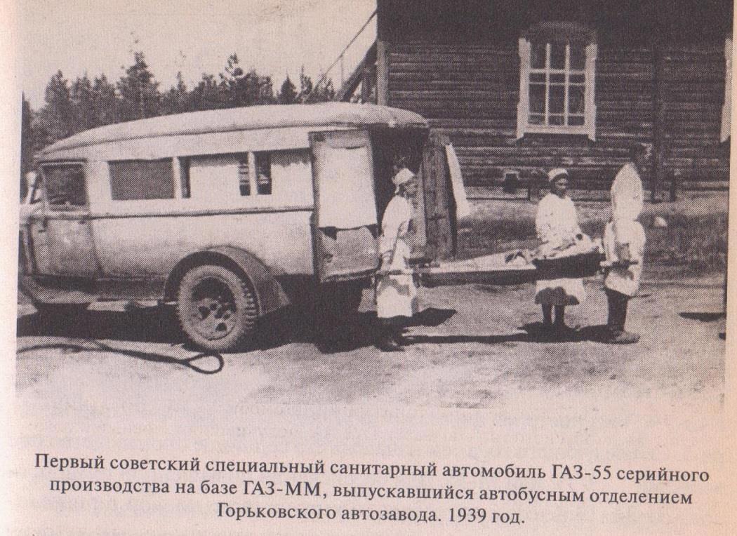 Первым в СССР серийным автомобилем скорой помощи, выходившим таковым уже с завода, стал легендарный ГАЗ-55 на шасси полуторки ГАЗ-ММ: