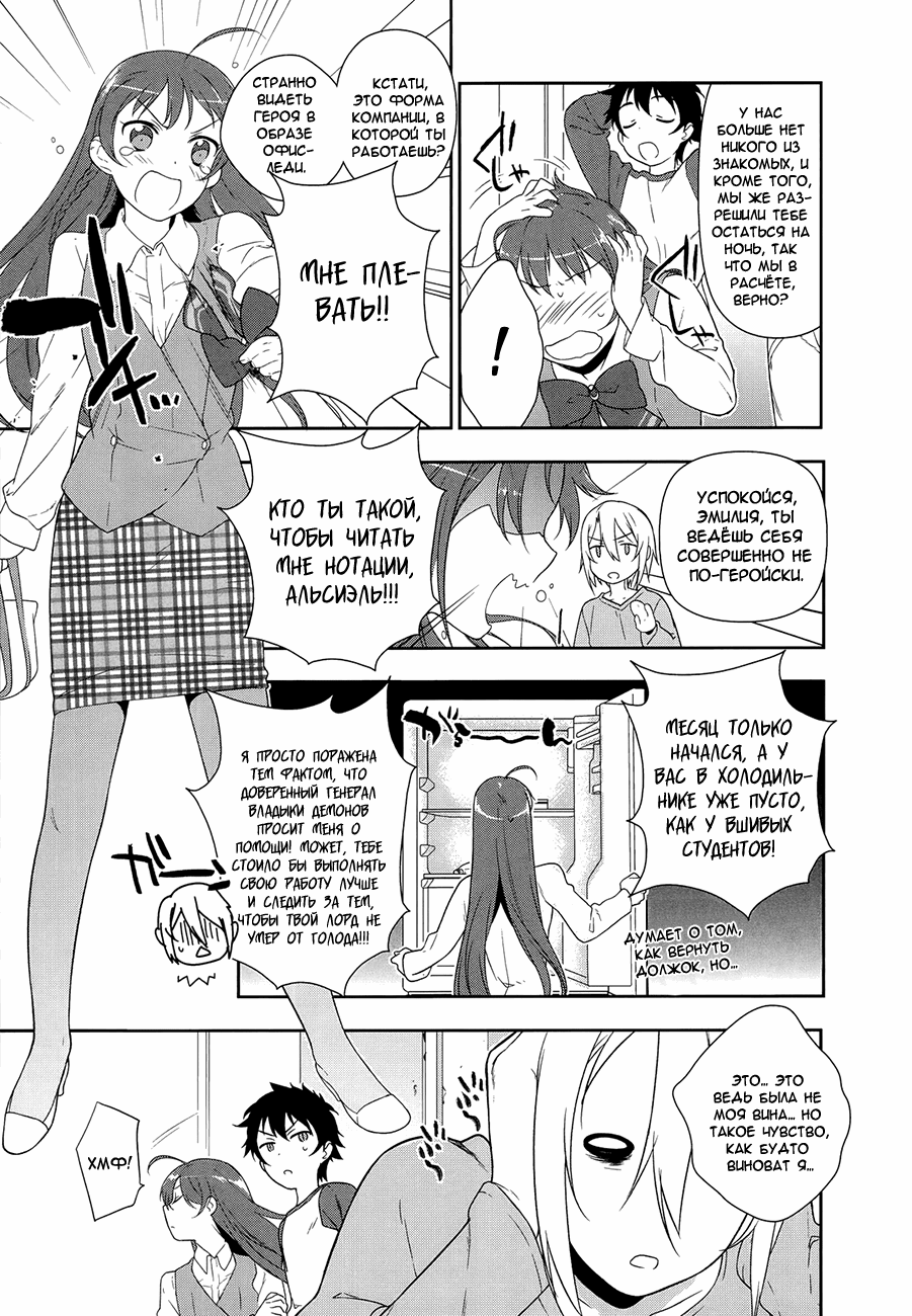 Прошло время. Умная, дисциплинированная и серьёзная героиня устроилась работать в офис, и неплохо живёт в приличной квартире, стильно одевается, фанатеет с исторических сериалов про бородатого сёгуна. Амбициозный владыка демонов работает на полставки в "Макдональдсе", лелея планы получить полную ставку - а там дело само пойдёт, вплоть до власти над миром. Все же начинали с малого. Правда, кормить приходится и себя, и подручного... Героиня иногда навещает парочку, чтобы убедиться, что они чего не натворили, подкинуть им продуктов (чтоб не сдохли от передозировки растворимой лапшой) и заставить убраться в комнате.