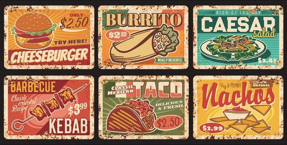 Для примера оставлю образы, как я бы оформил все направления в стиле классических реклам на металлической пластине: