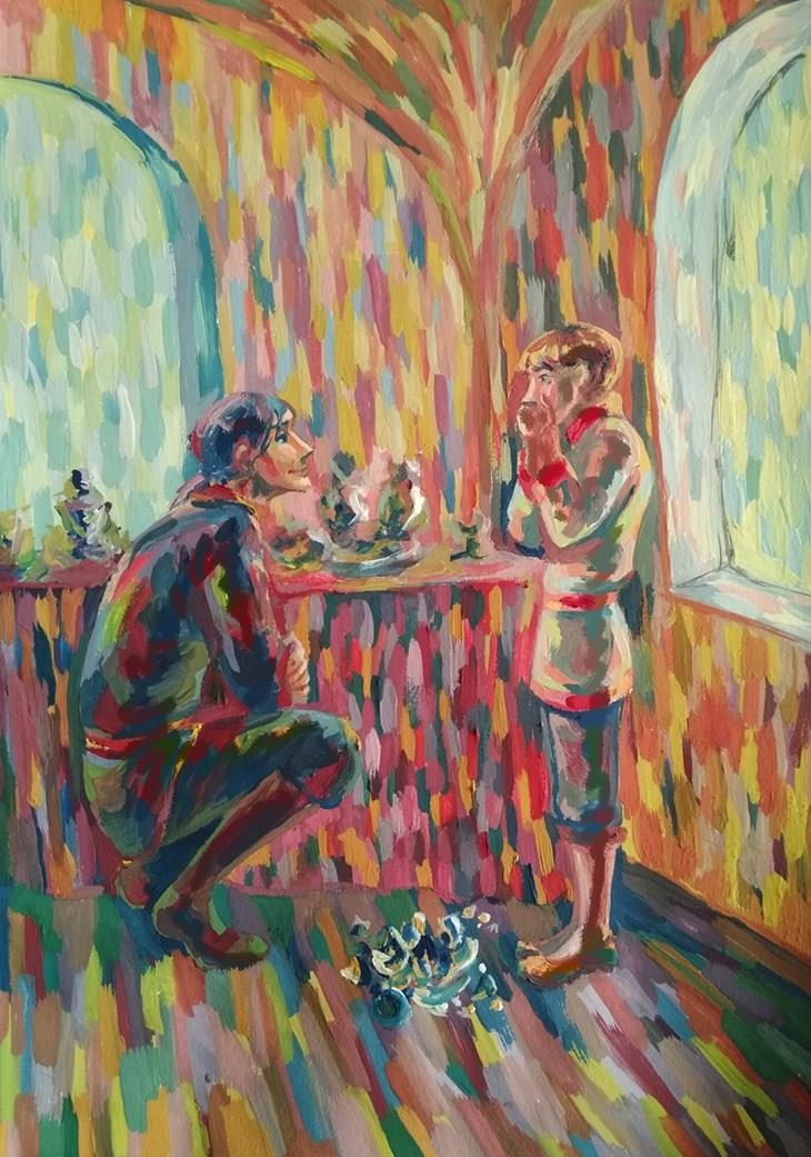 Иллюстрации к сказкам показала, было бы логичным показать к роману. Чем и займусь.