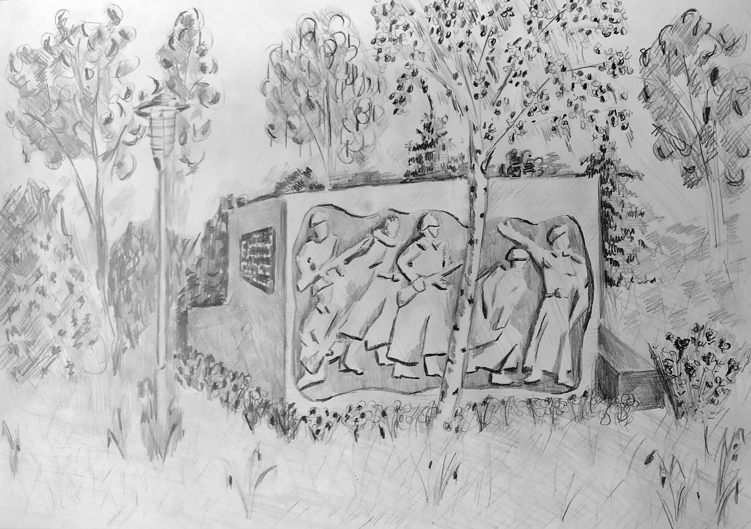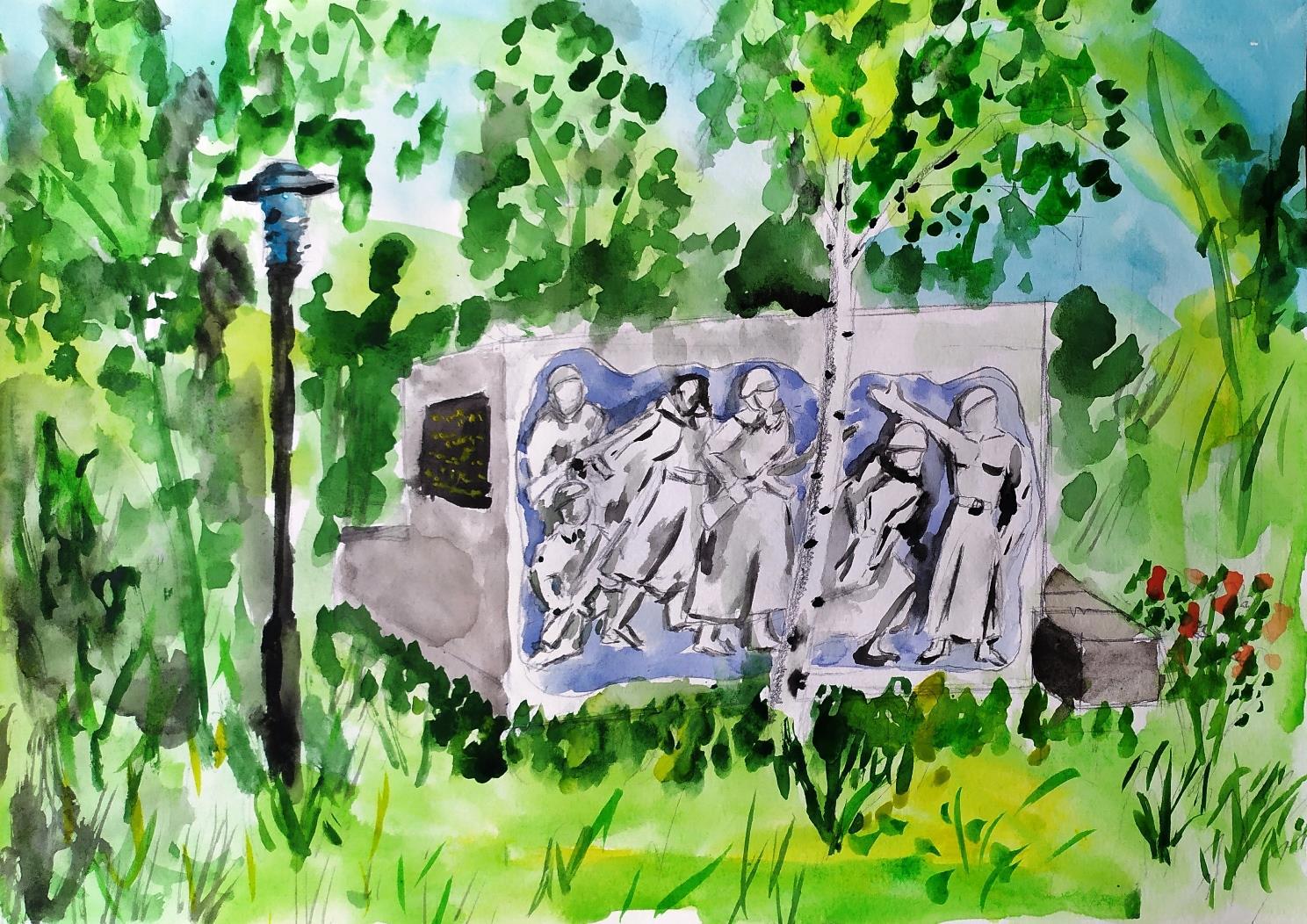 Автор: Кучеренко ВладимирСегодня солнечная погодка! Ходили в парк! Мне захотелось изобразить мемориал в честь солдат, защищавших нашу родину в Великую Отечественную войну. Как обычно, в двух вариантах: