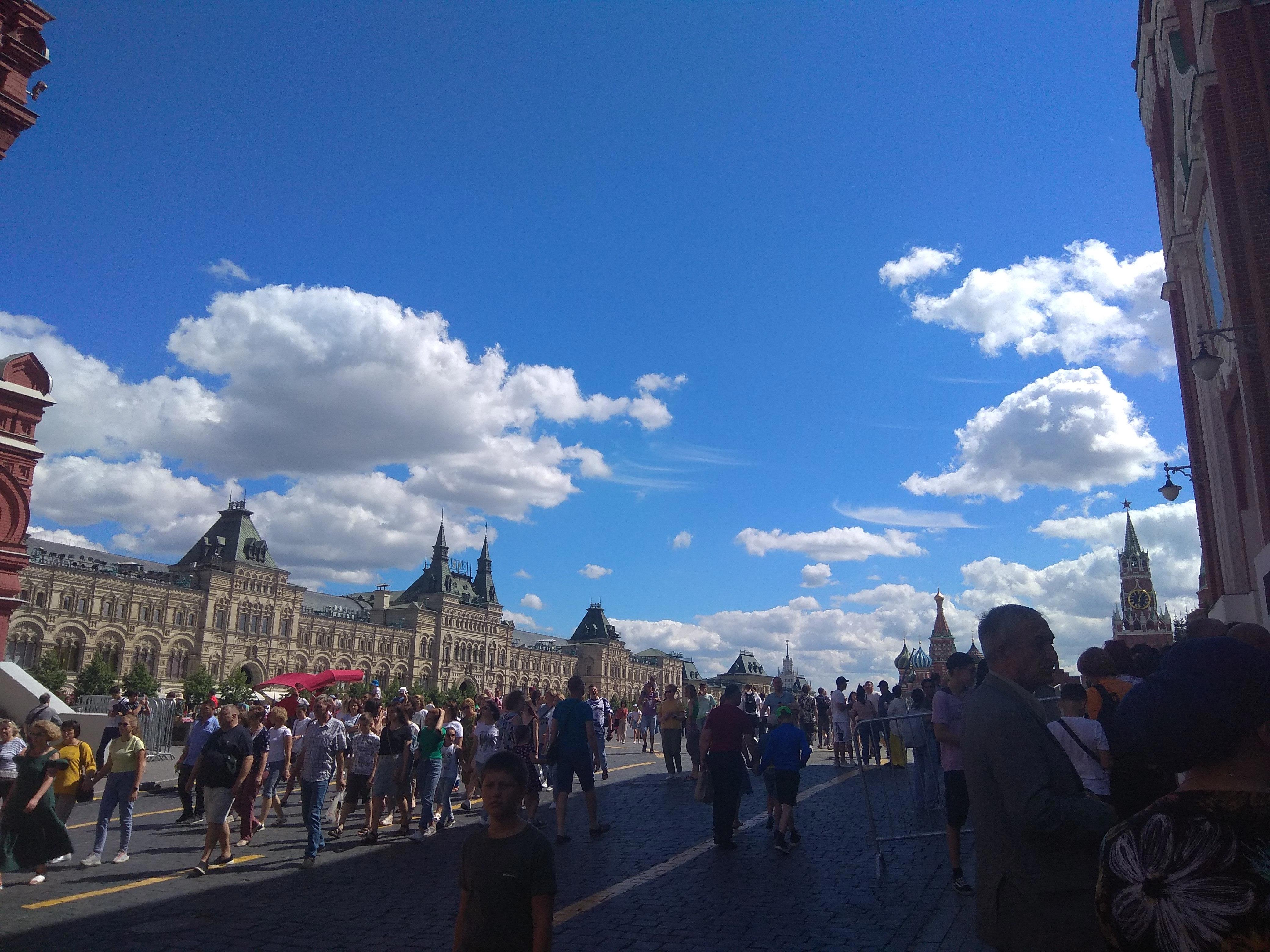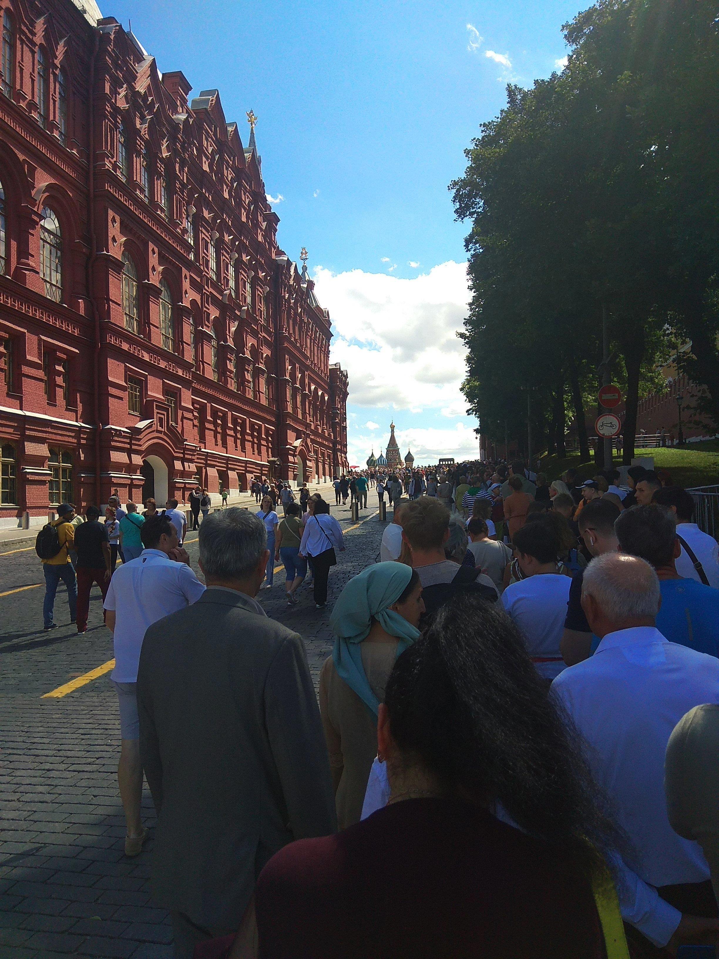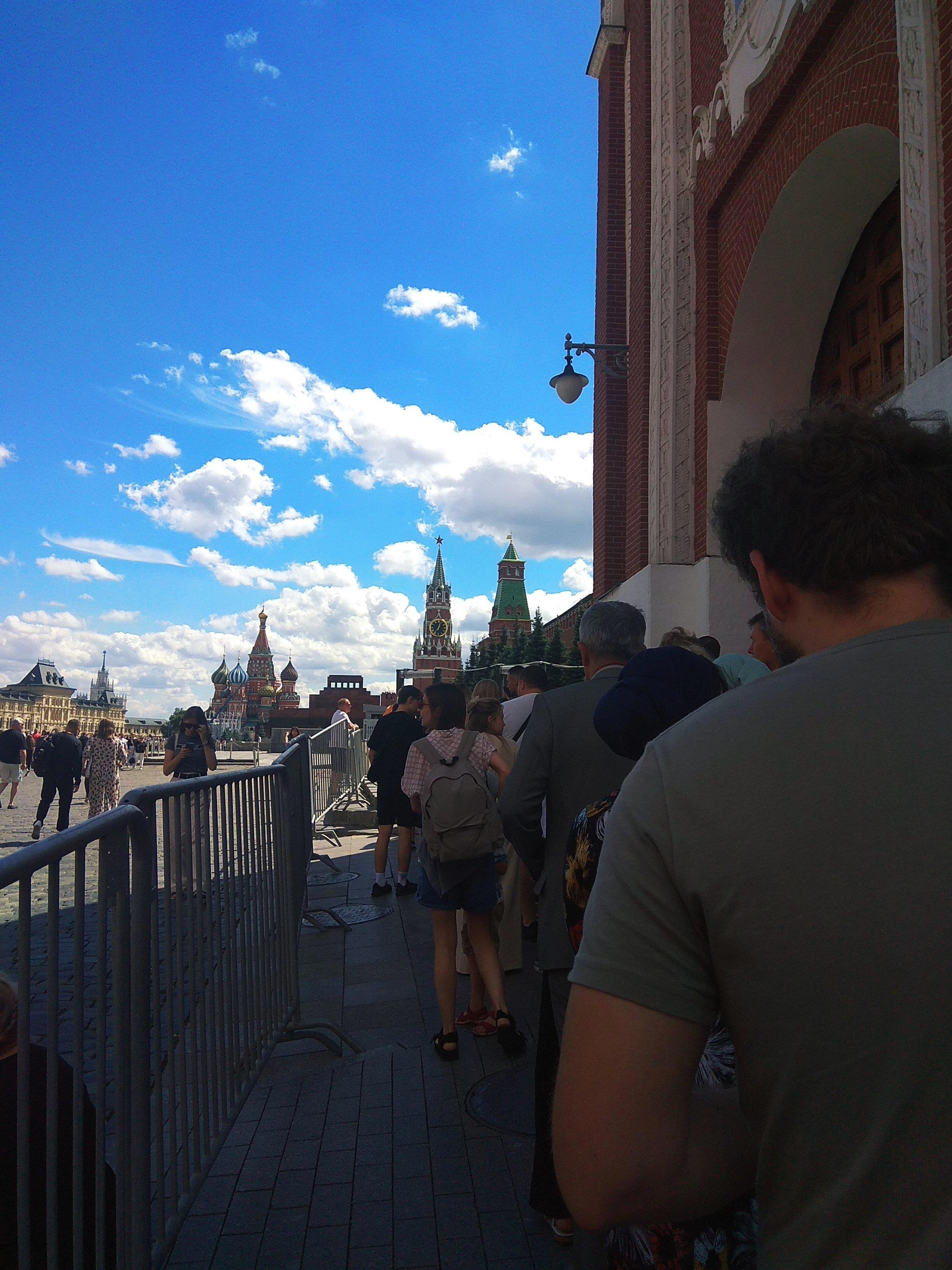 Чтоб вы понимали, мавзолей где-то там, посредине Красной площади, а мы, считай, на Манежной. Простояли пятьдесят минут, боялись, что не успеем, т.к. приехали уже около двенадцати дня.