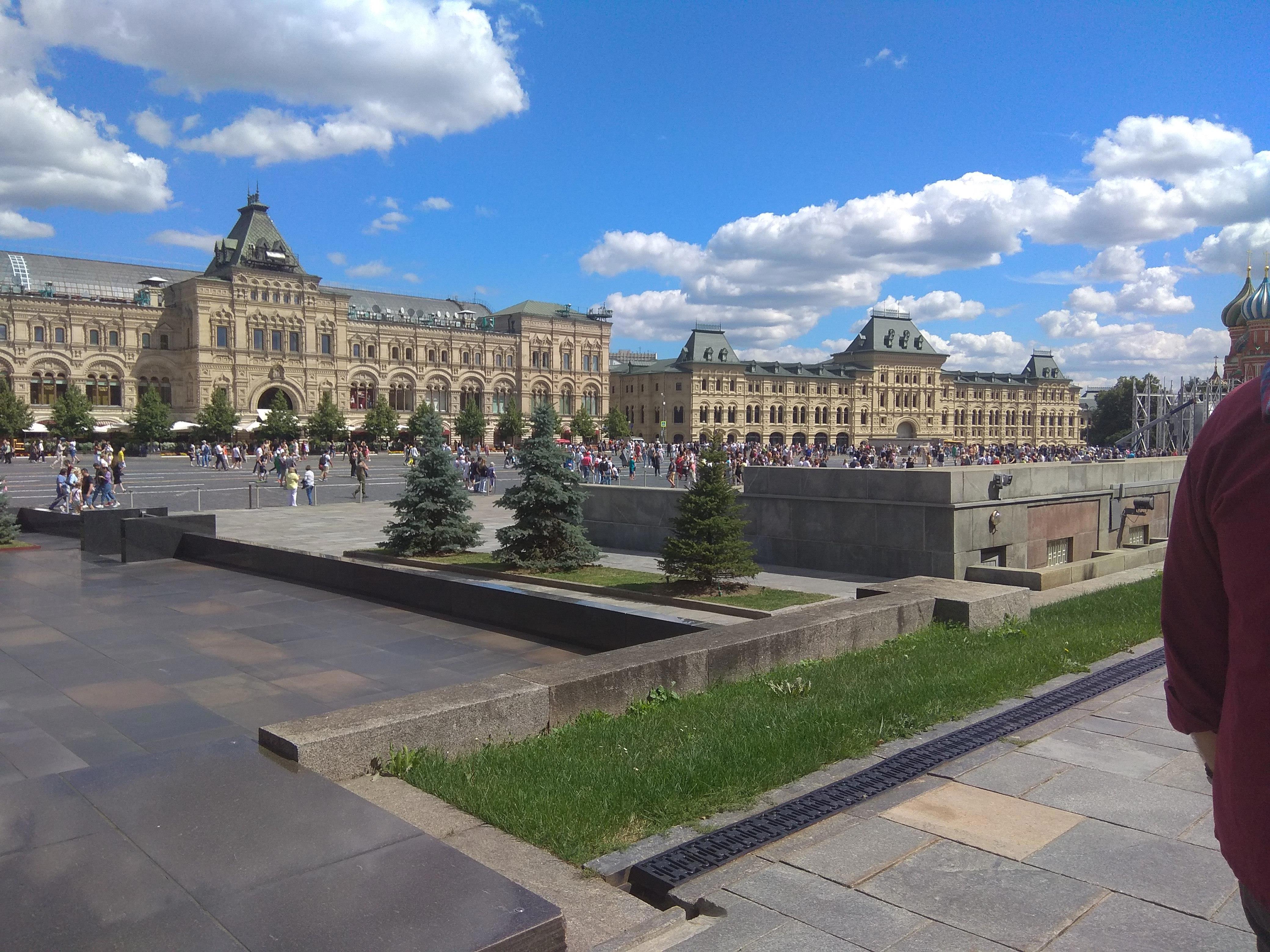 Стоять в очереди было весело. За это время мы перечитали в интернете историю Кремля, ещё раз изучили, как и какая башня называется, наболтались с "мальчиками", стоявшими рядом. Когда досмотр прошел, нас запустили в зону мемориального комплекса у кремлевской стены.