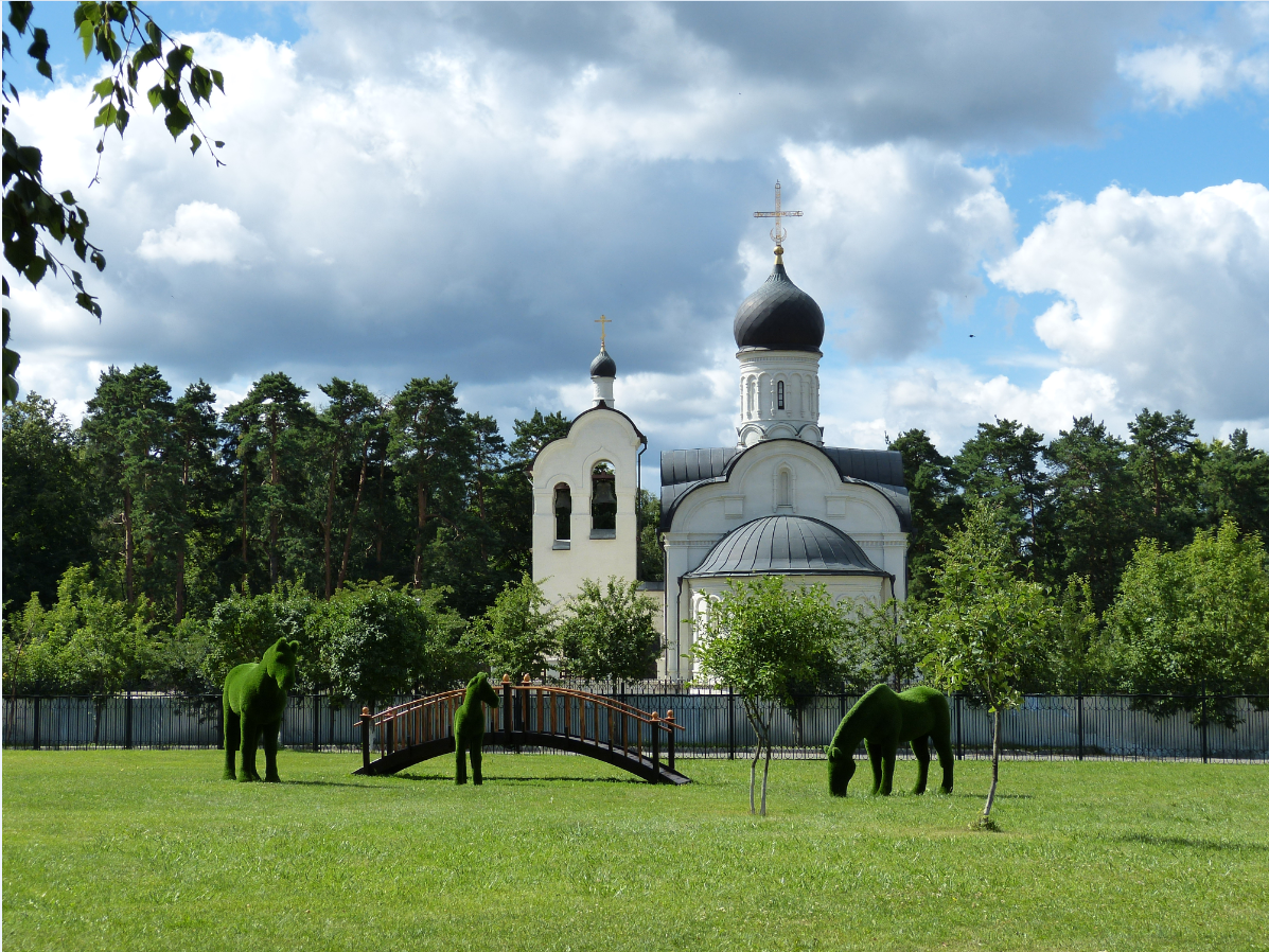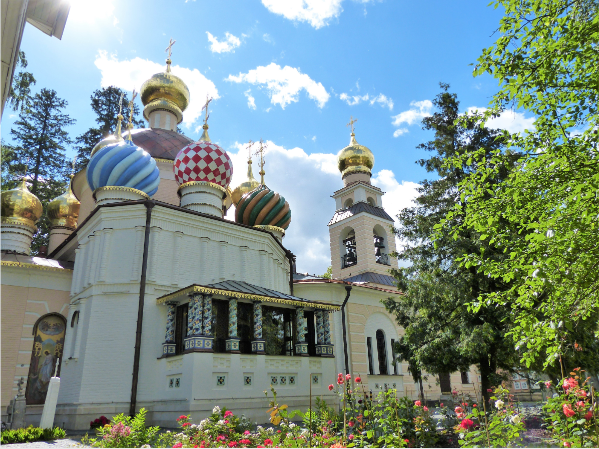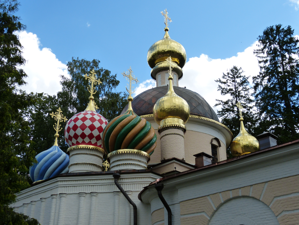 Прежде всего, нельзя не заметить очень красивую церковь, чьи разноцветные главы различимы ещё от железнодорожных путей. Эта церковь входит в комплекс зданий летней резиденции Патриарха Московского и всея Руси.