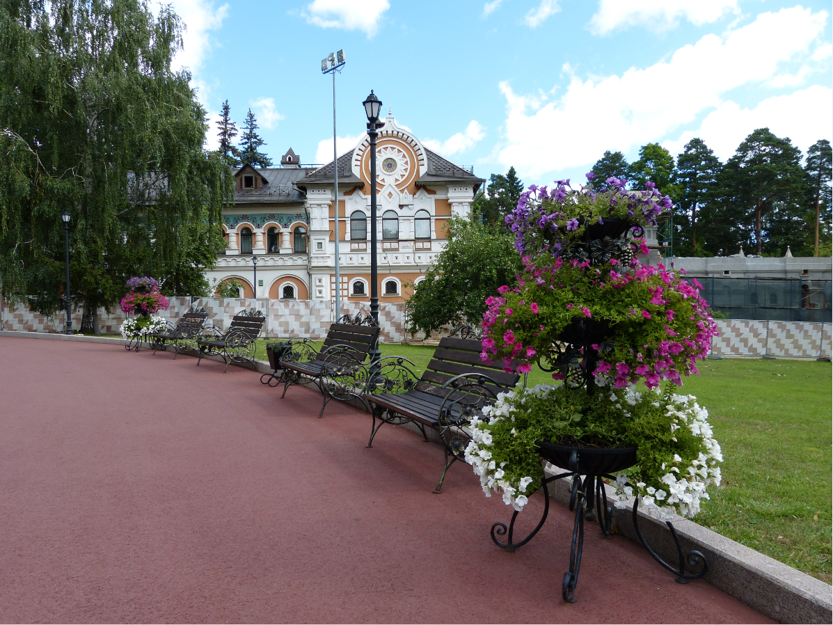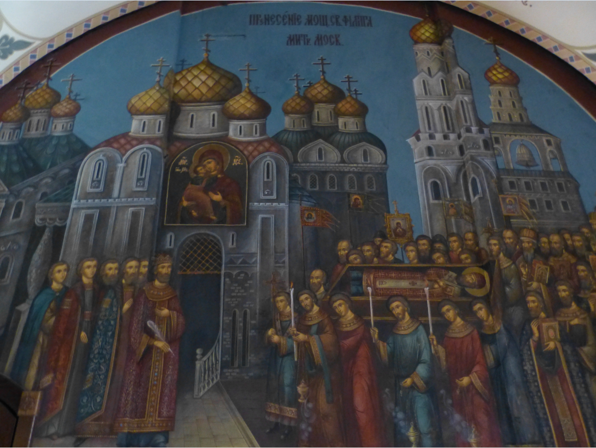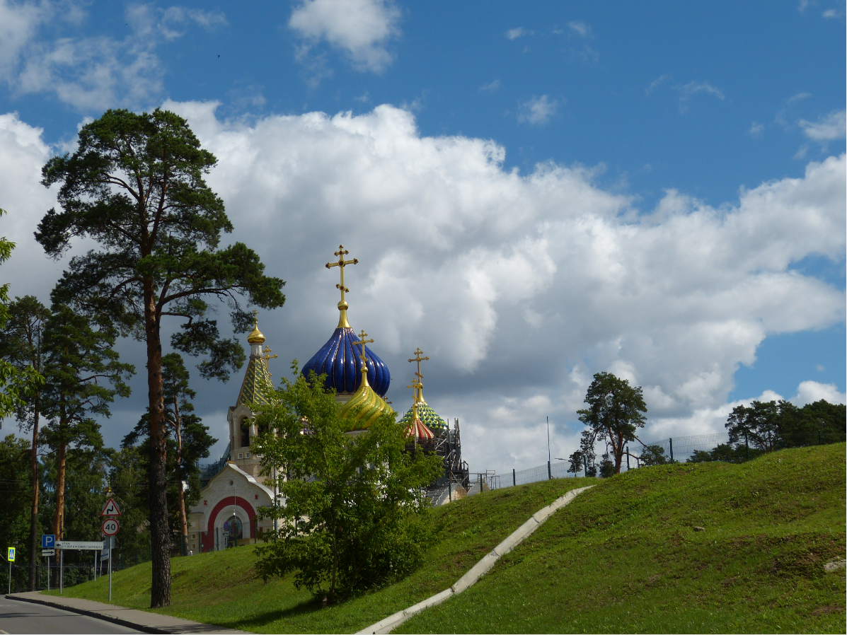 Прежде всего, нельзя не заметить очень красивую церковь, чьи разноцветные главы различимы ещё от железнодорожных путей. Эта церковь входит в комплекс зданий летней резиденции Патриарха Московского и всея Руси.