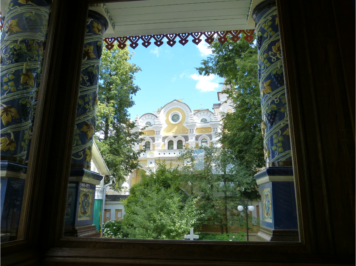 Из дворика храма Спаса Преображения Господня видны затейливые башенки главного здания резиденции Патриарха, но, как вы сами понимаете, обычных зевак туда не допускают.