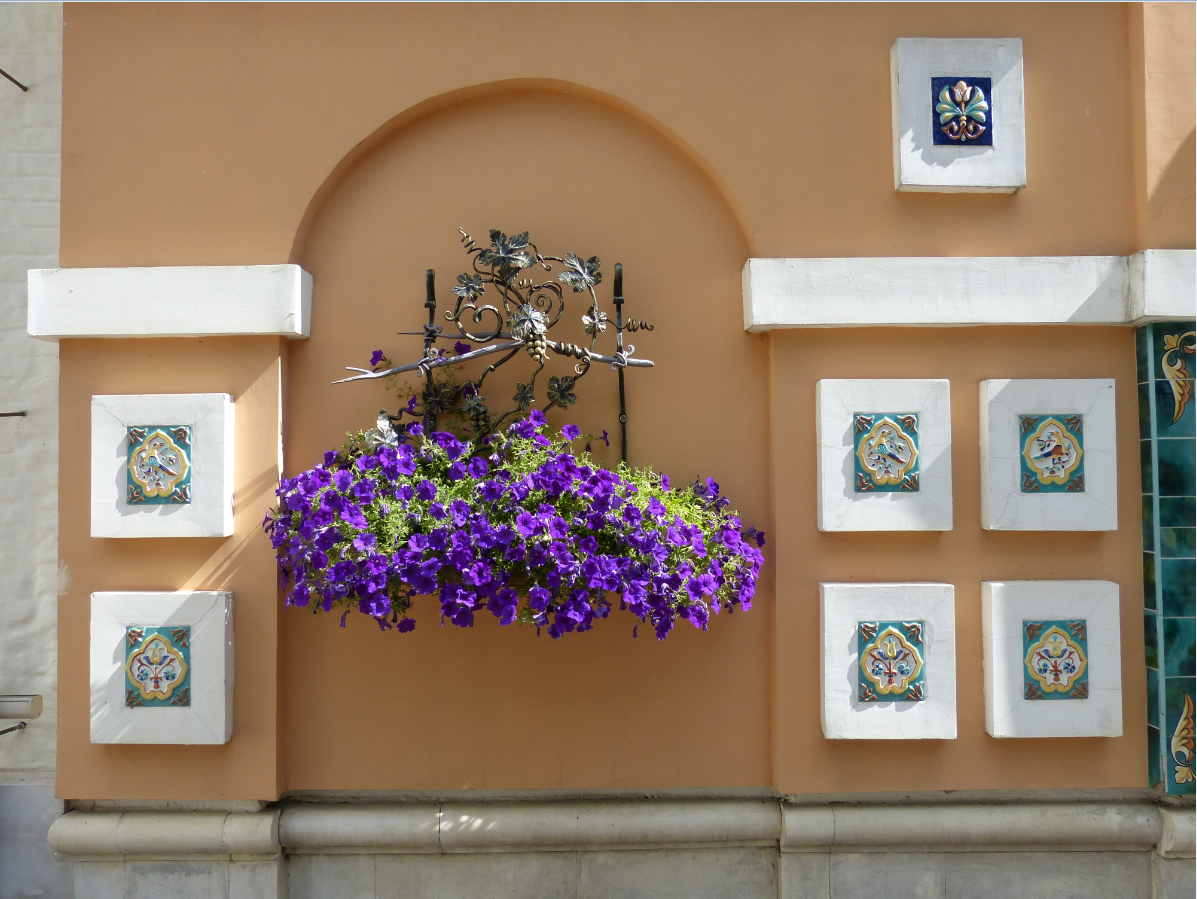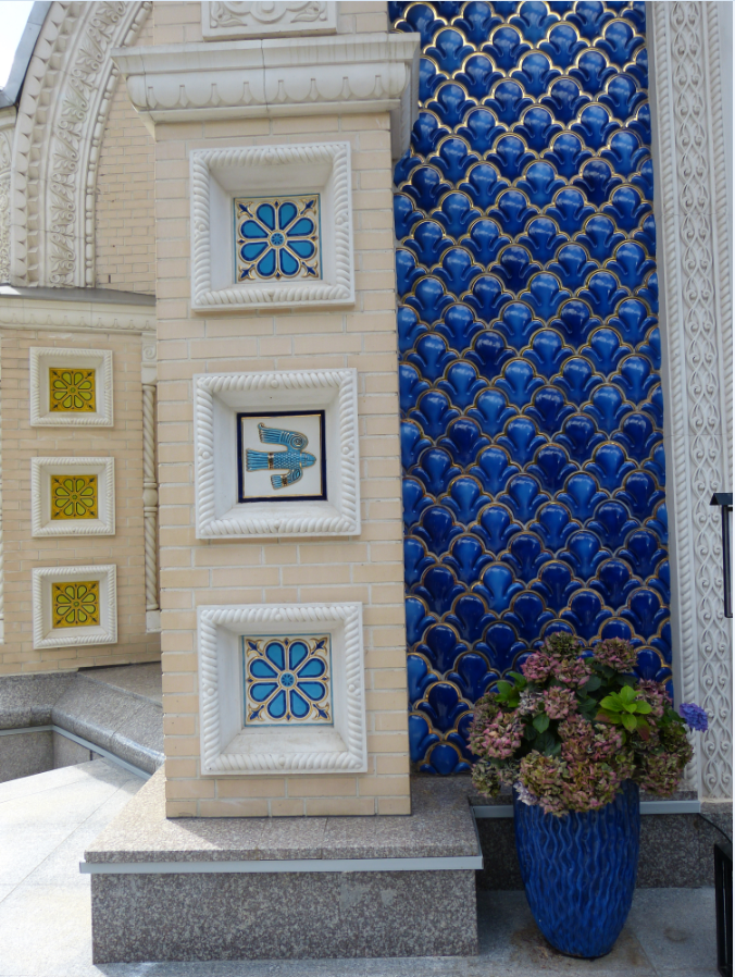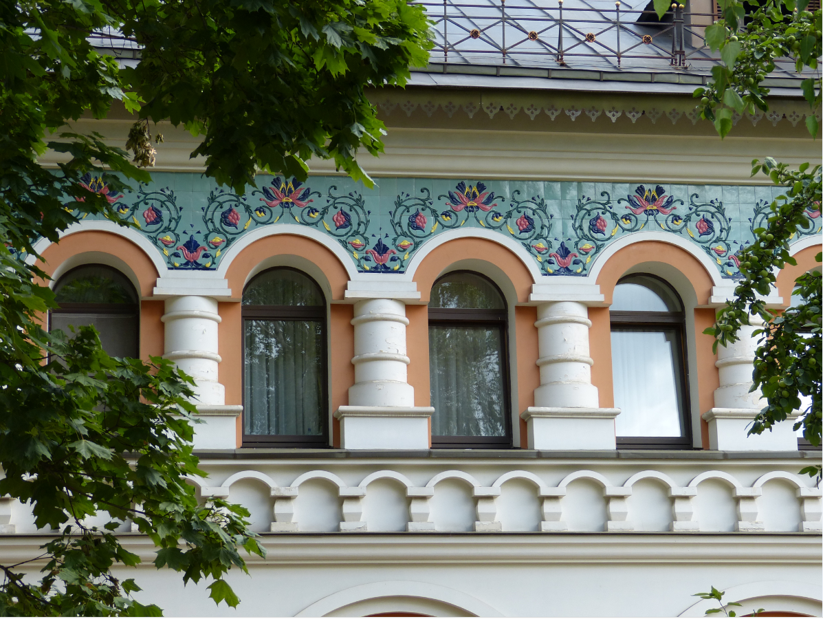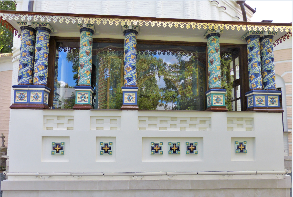 Декор из плитки украшает и этот корпус, и примыкающую к нему ограду.