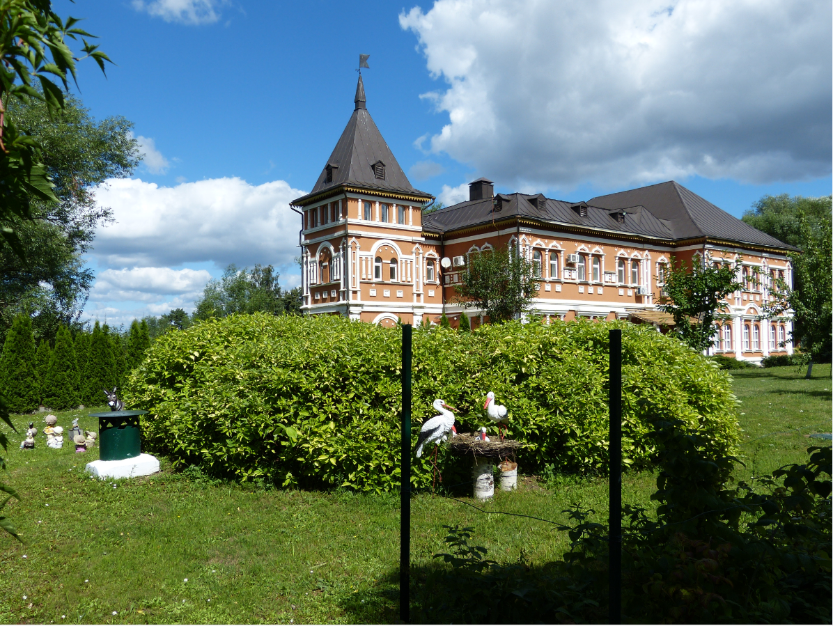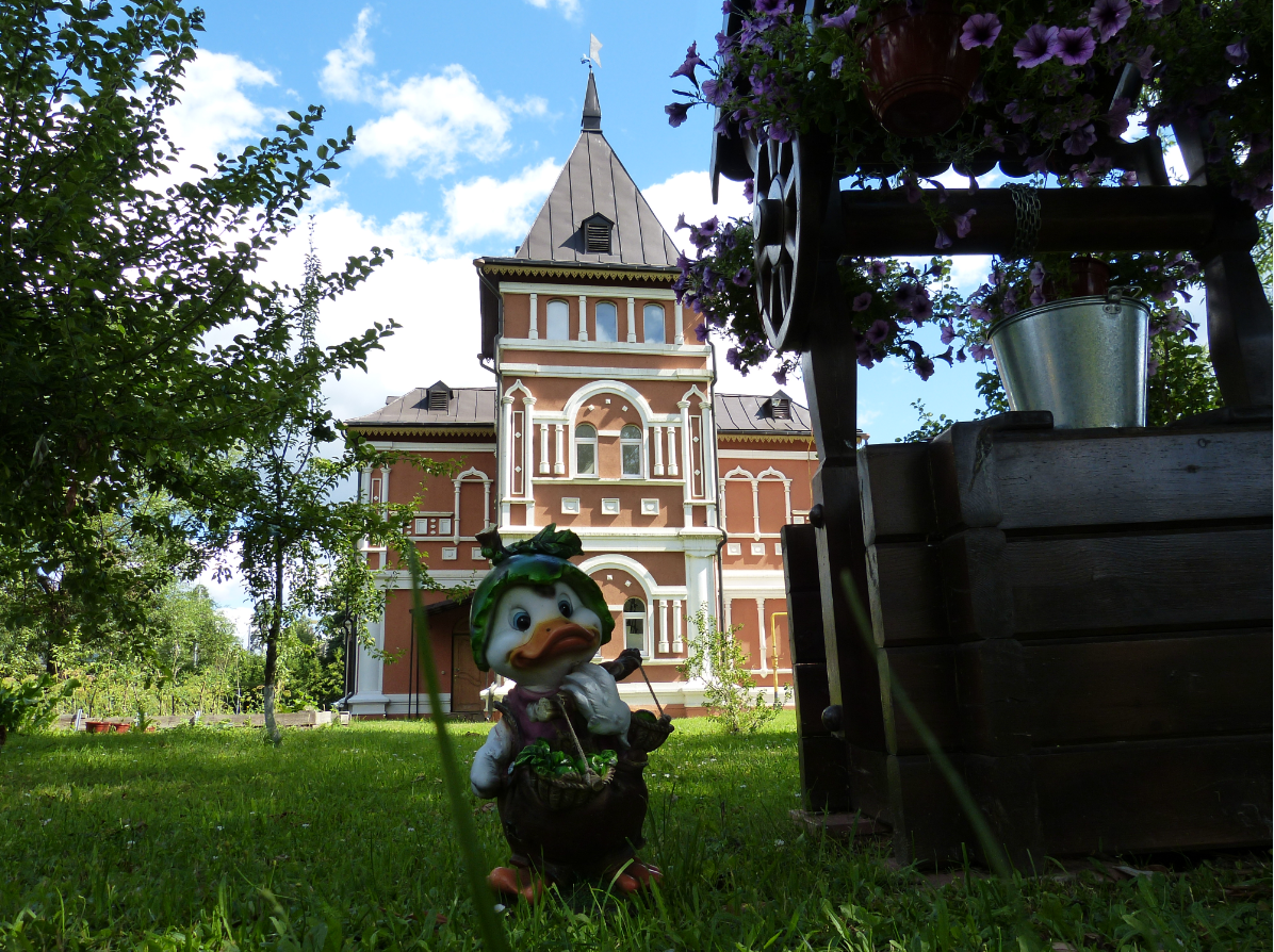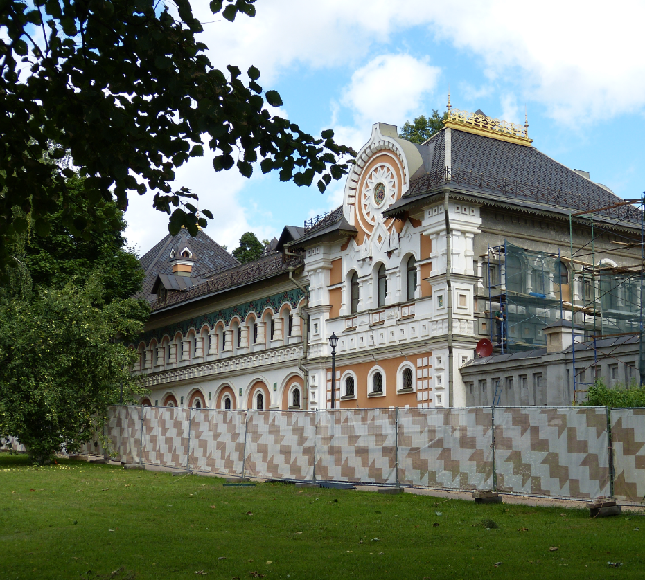 Ещё по пути от железнодорожной платформы через ограду заметен один из служебных корпусов. Пусть это и новодел, но смотрится он очень симпатично.