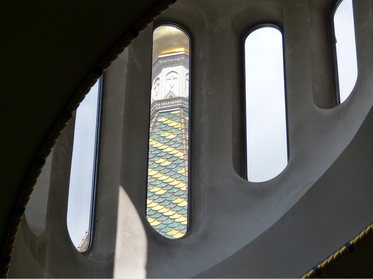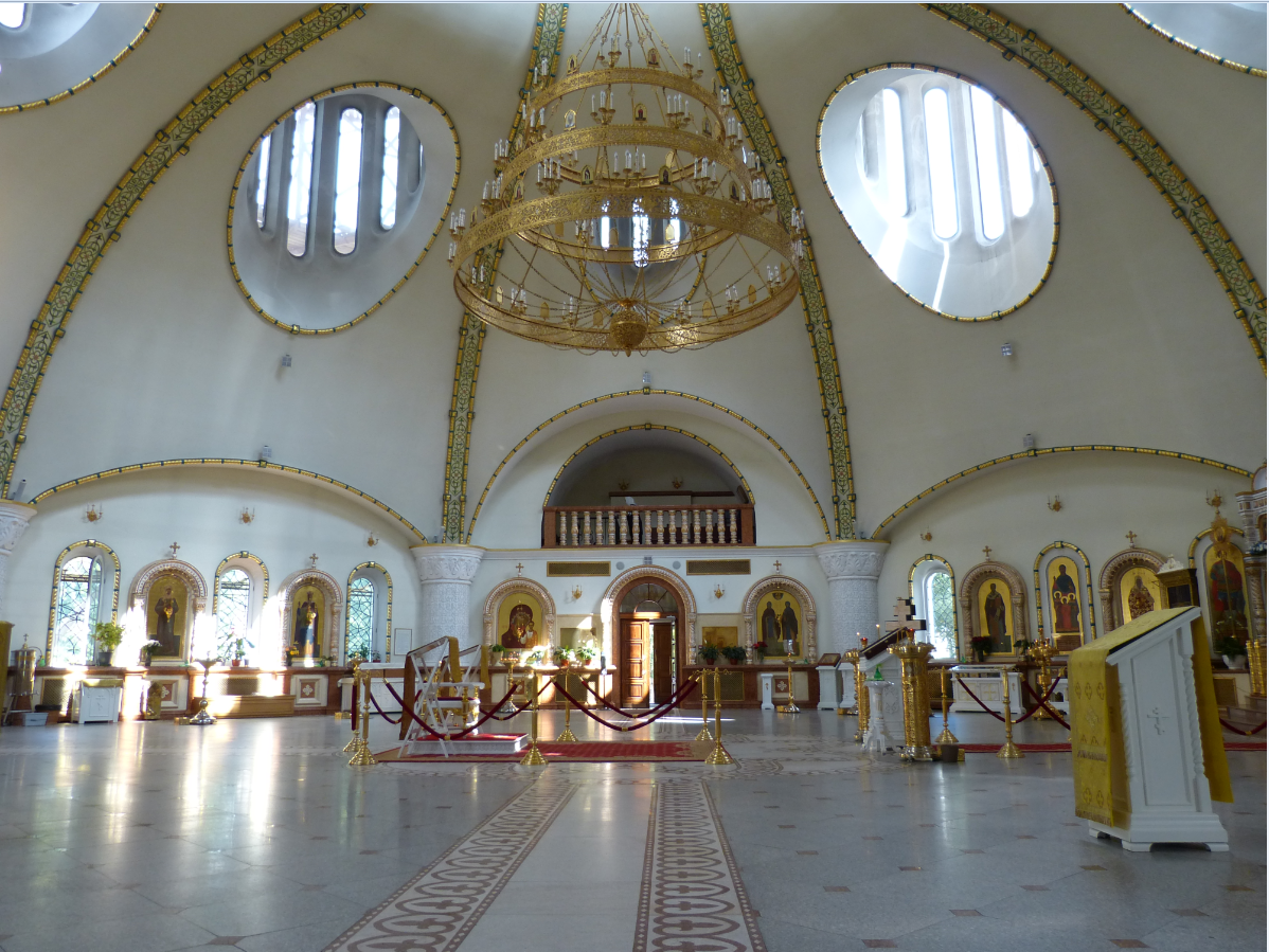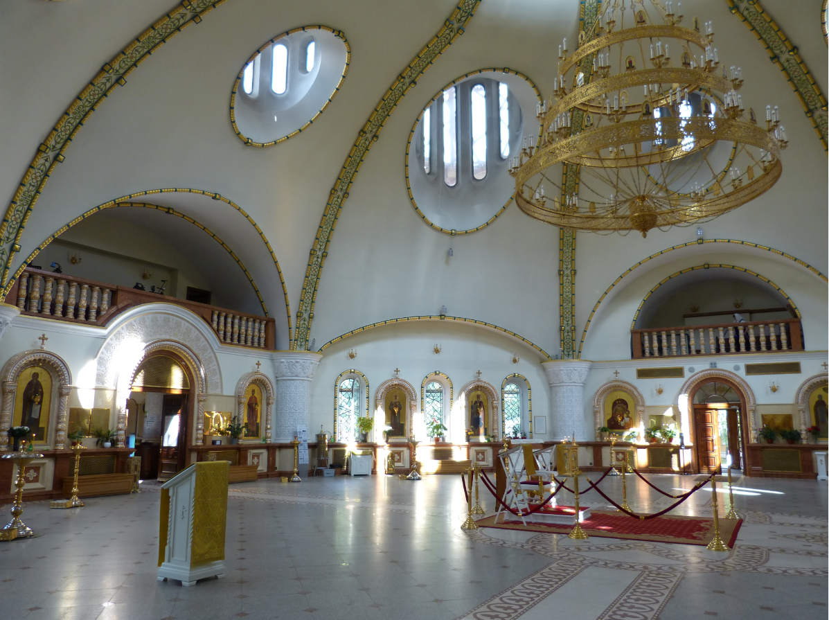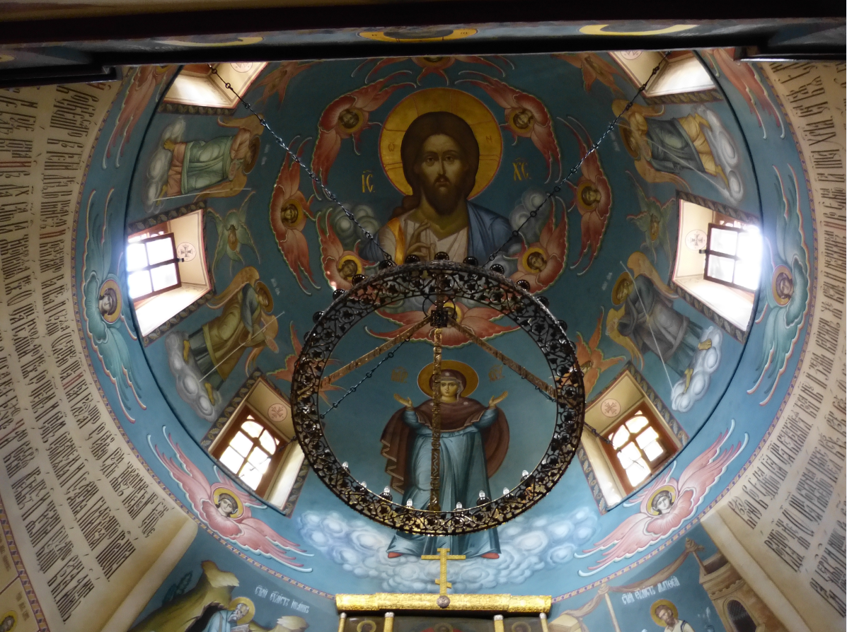 Его интерьер более традиционный. Видно, что росписи недавно отреставрировали.