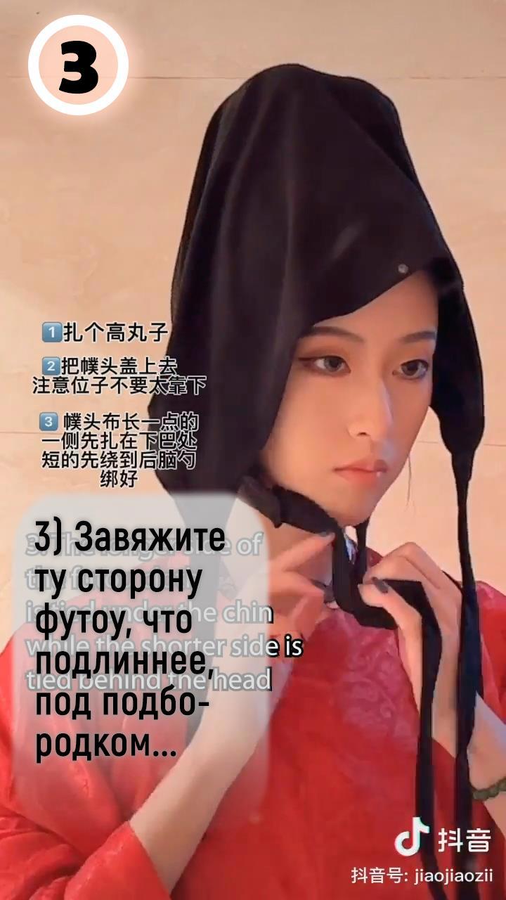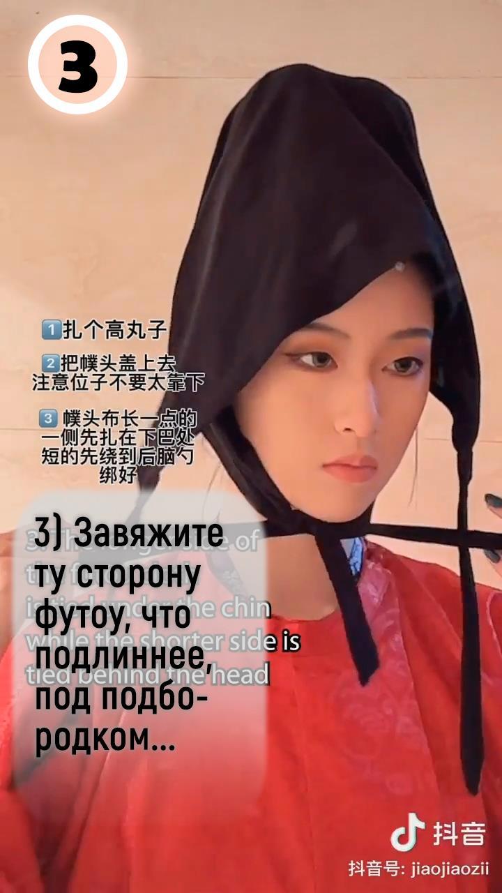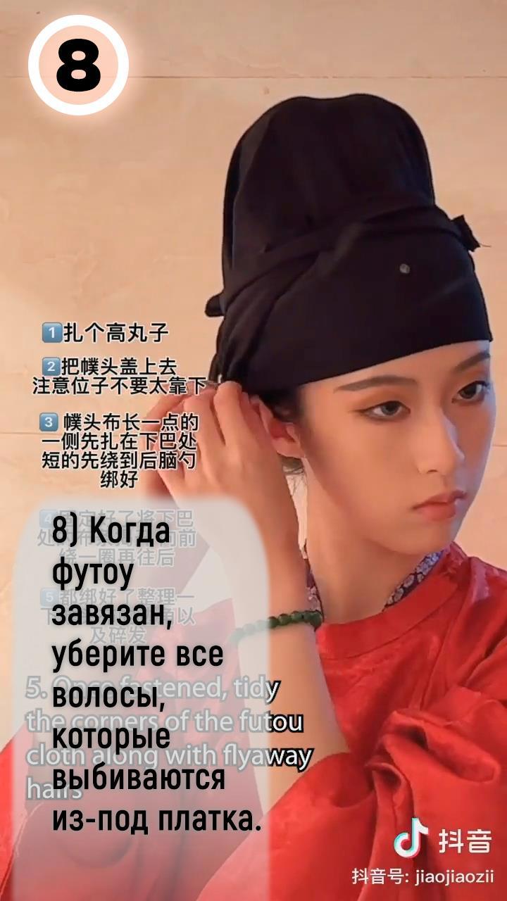 Футоу (幞头 тюрбан, платок для головы) носили мужчины, но во время династии Тан девушки часто носили мужскую одежду, так что этот мастер-класс вполне аутентичен.