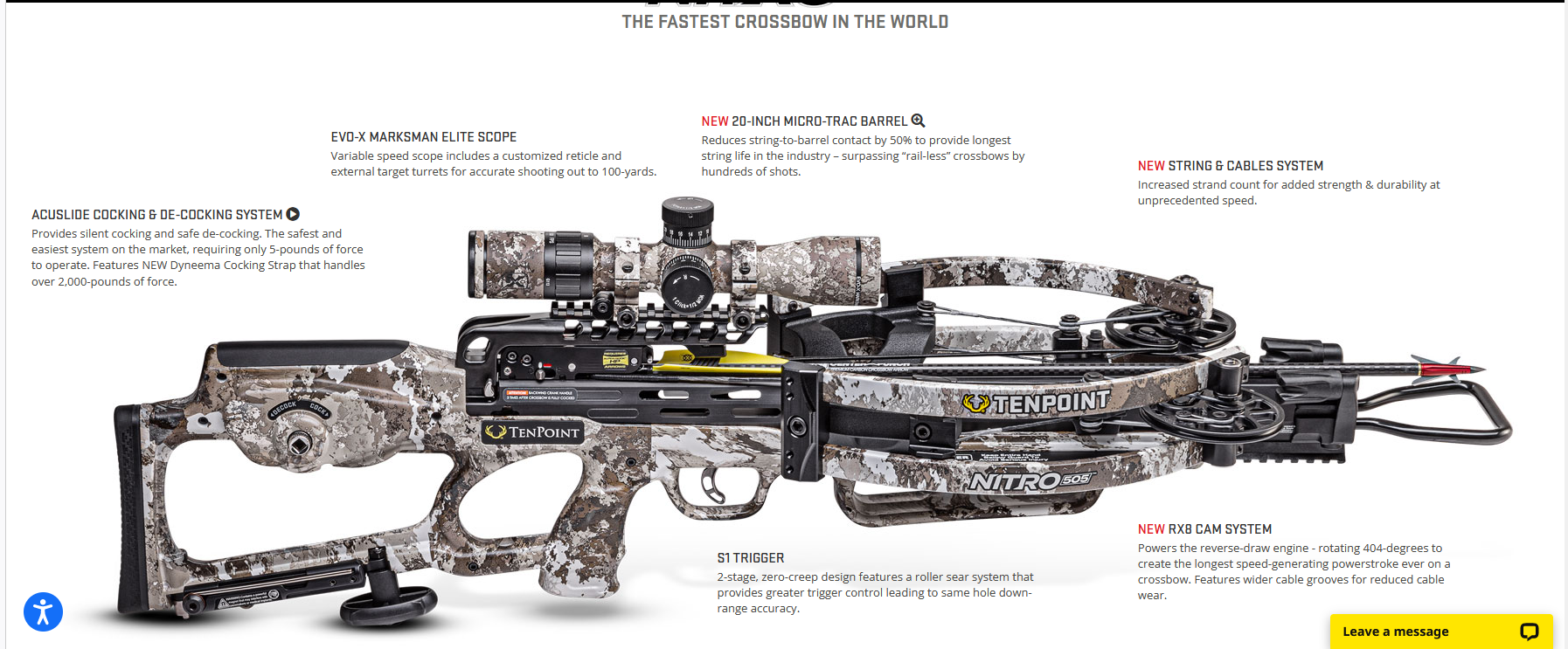 Автор: MorcelebБуржуины из TenPoint продают арбалет, который заявляют как самый быстрый (имеется в виду по скорости стрелы). В принципе, с учетом того, что на 400 грановой (почти 25 граммов) стреле они получили 505 футов в секунду, то есть нешуточные 154 метра в секунду. Это означает что стрела на вылете имеет энергию 295 дж, то есть почти дотягивает до энергии ПМа. Правда стоит учесть, что проникающая способность у нее побольше будет.