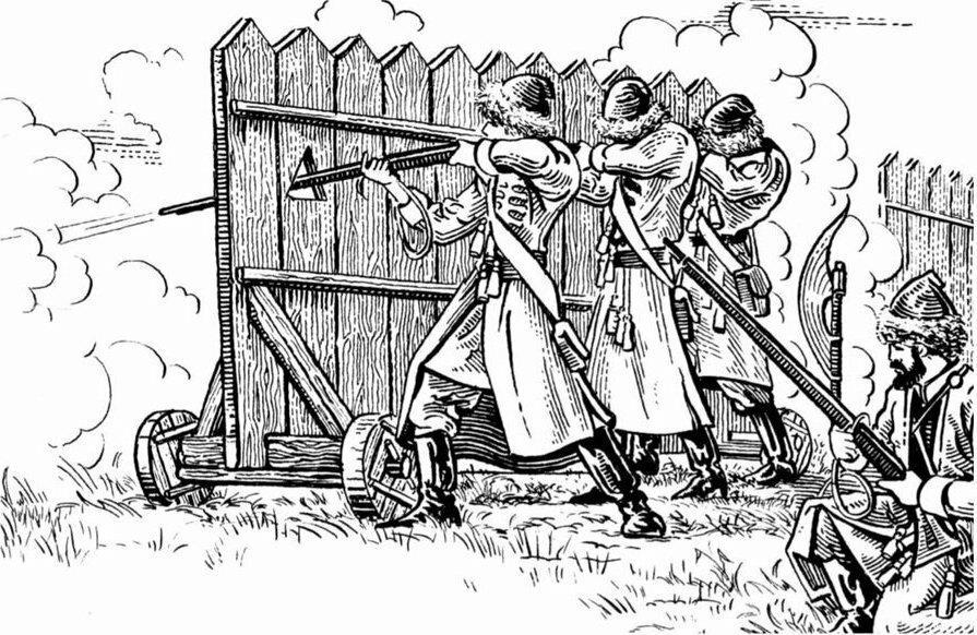 Гуляй-город — это укрепленные повозки с бойницами. Фактически — подвижная крепость. Одна повозка – 6 бойниц, за каждой из которой скрывались вот такие красавицы, выплевывающающие один раз в три минуты до двух фунтов (около киллограмма) различной гадости. И вот мимо фронта такого гуляй-города, состоявшего из 40 повозок (240 бойниц) и потащил за собой Хворостинин распаренных от догонялок членов своего фан-клуба из элитной ханской кавалерии.