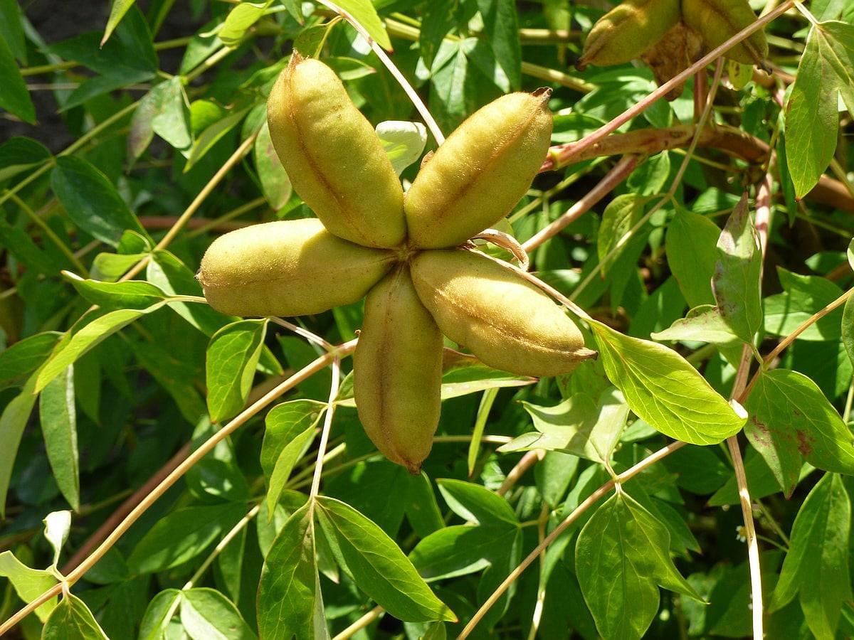 Размер отдельного стручка (?) 5 до 10 см - внутри черные горошины в мякоти. Скорее всего не куст, а лиана...