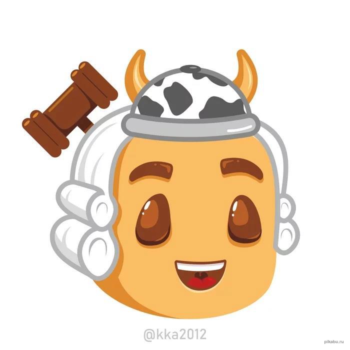 А рогатая шапка... наверно, она сделана из коровы из карикатуры, приложенной ниже. Хотя в контексте ее изображения в виде шлема Викингов, вероятно, она символизирует мужество, доблесть, стойкость и благородство, с которым я защищаю клиентов.
