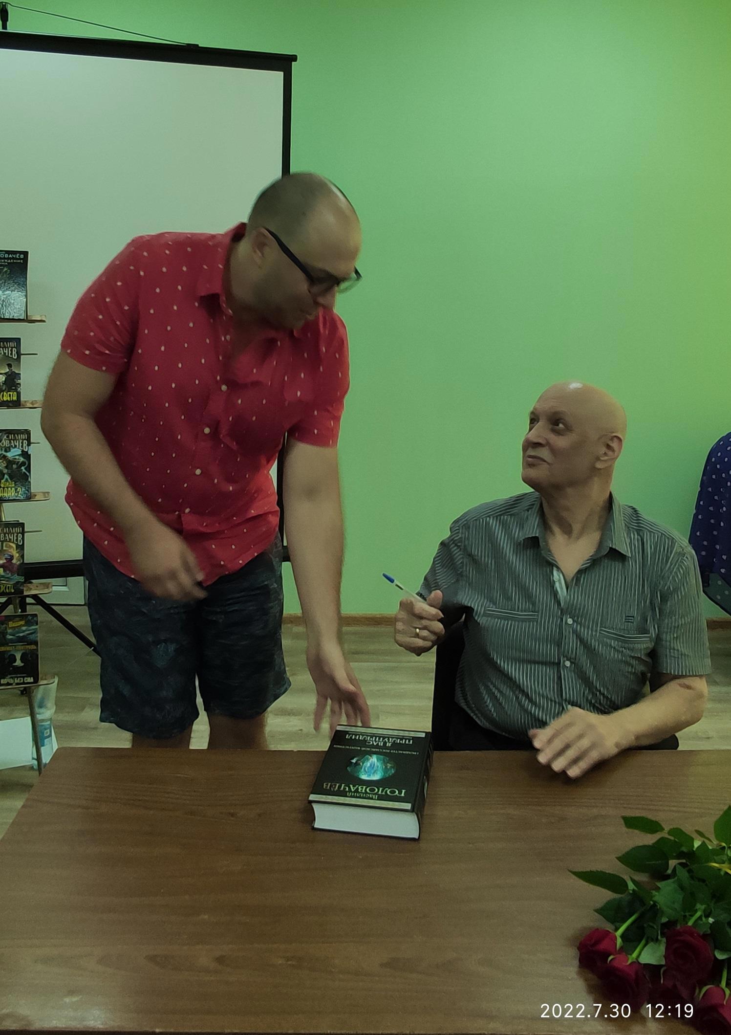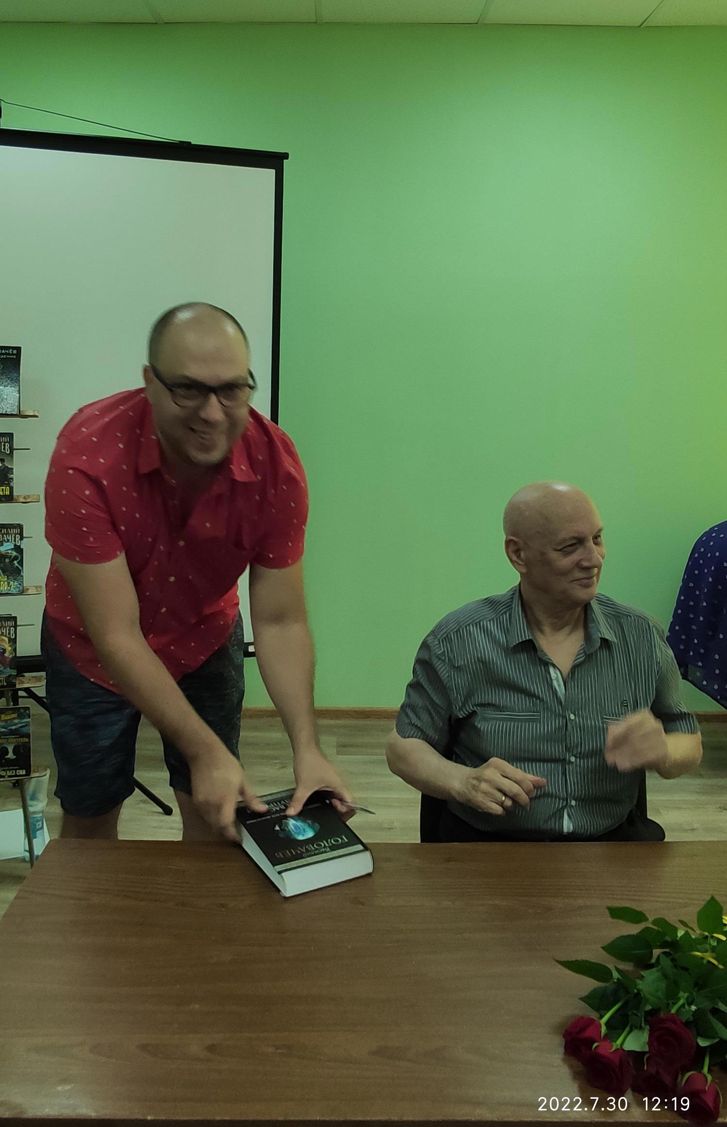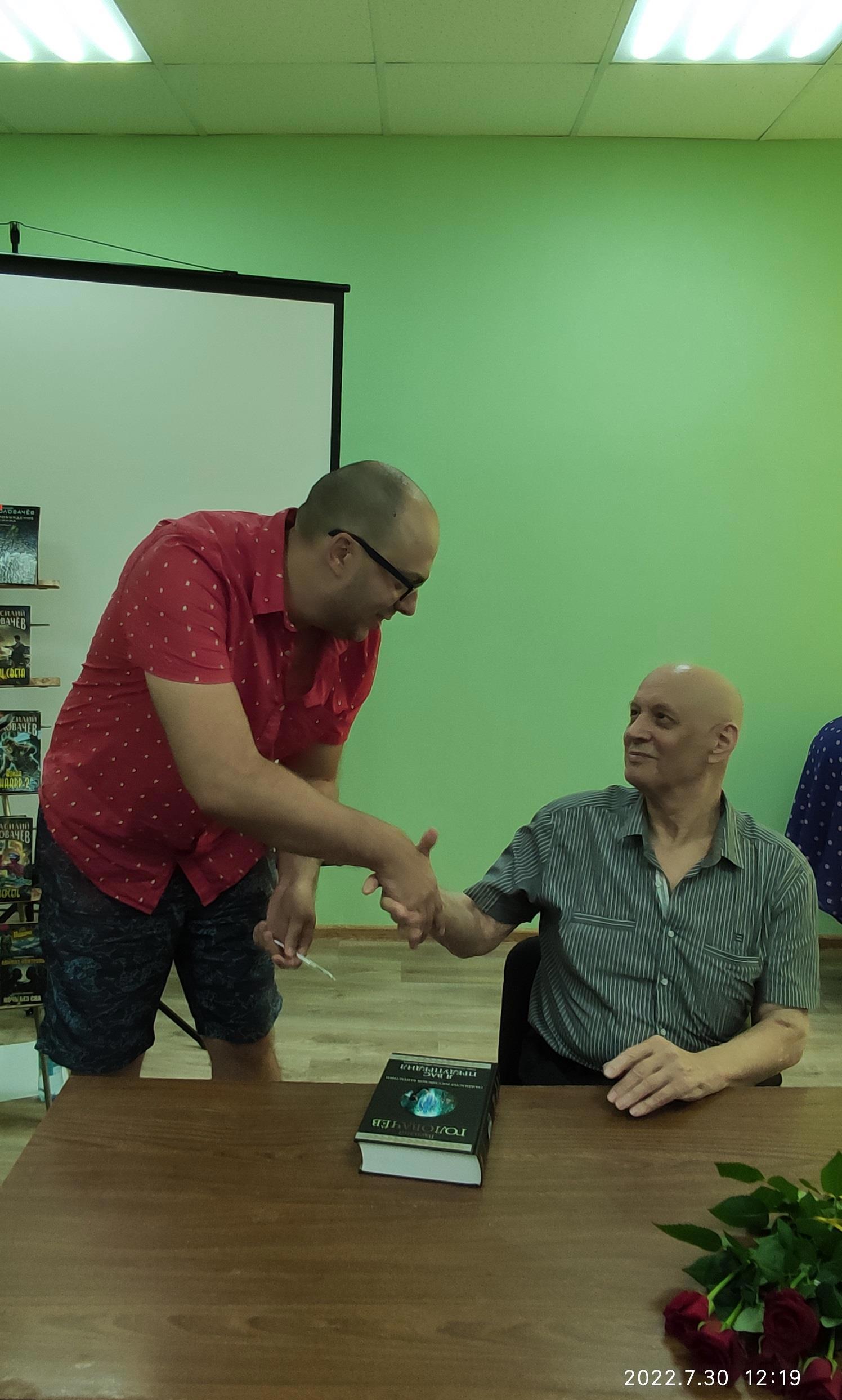 А потом милая тетенька-следователь из библиотеки всё-таки поймала меня и записала короткое видео, в котором я сознался, что участвовал в конкурсе, где председателем жюри был Головачев. Но я бы не посмел сказать ему об этом. Нет, друзья, не смог бы. Потому что я приехал туда как верный и благодарный поклонник.