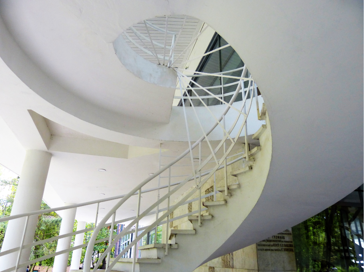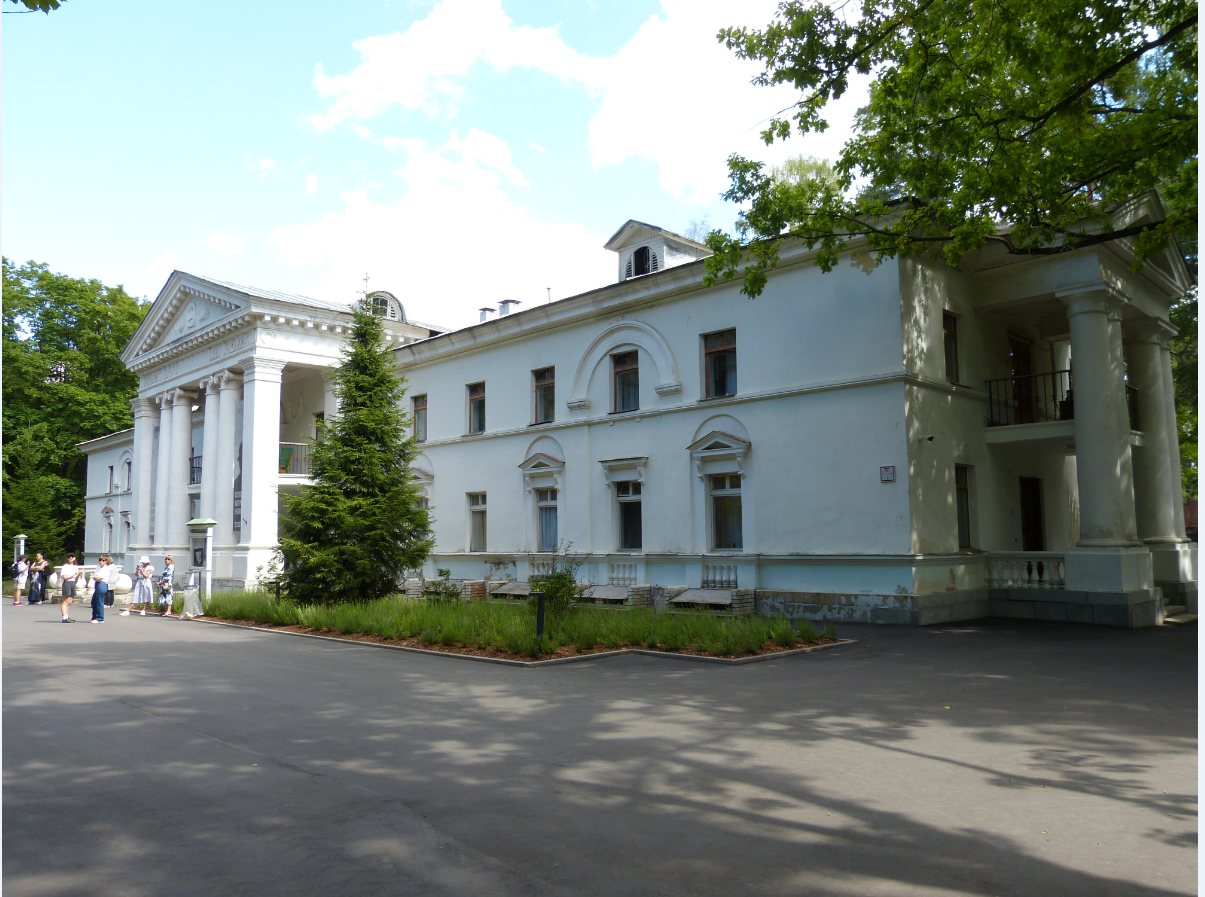 Вот Дом творчества писателей, построенный в 1955 году. Типичный сталинский ампир, как снаружи, так и внутри.
