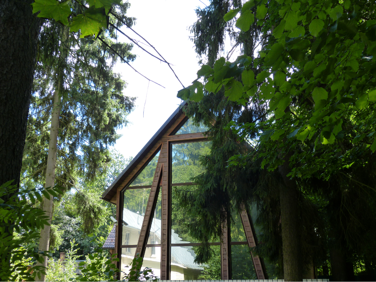 и попадаешь к дому с огромными окнами во всю северную стену.