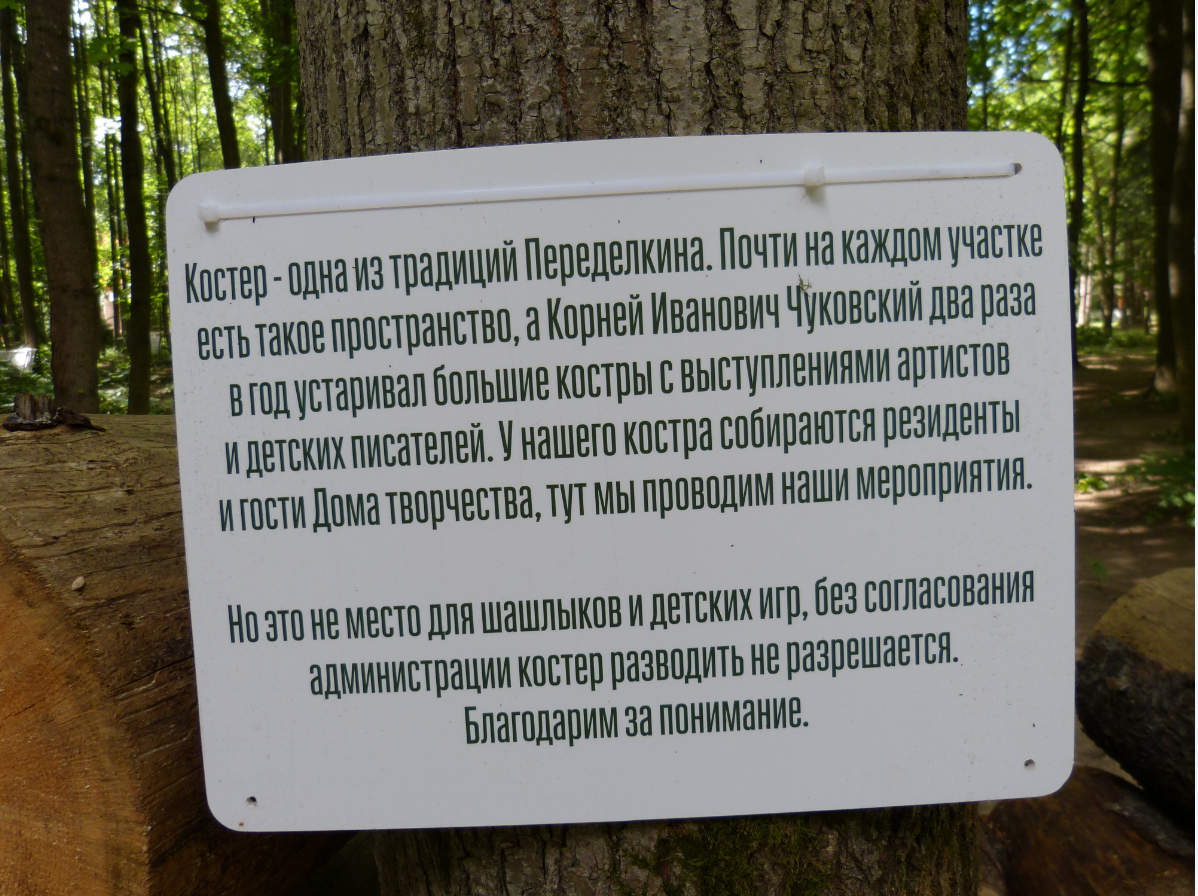 На территории писательского городка немало простых деревянных домиков, большинство из которых жилые. Многие имеют таблички "Жилой дом. Не входите, пожалуйста!" Можно сделать вывод, что туристы уже порядком надоели их обитателям.
